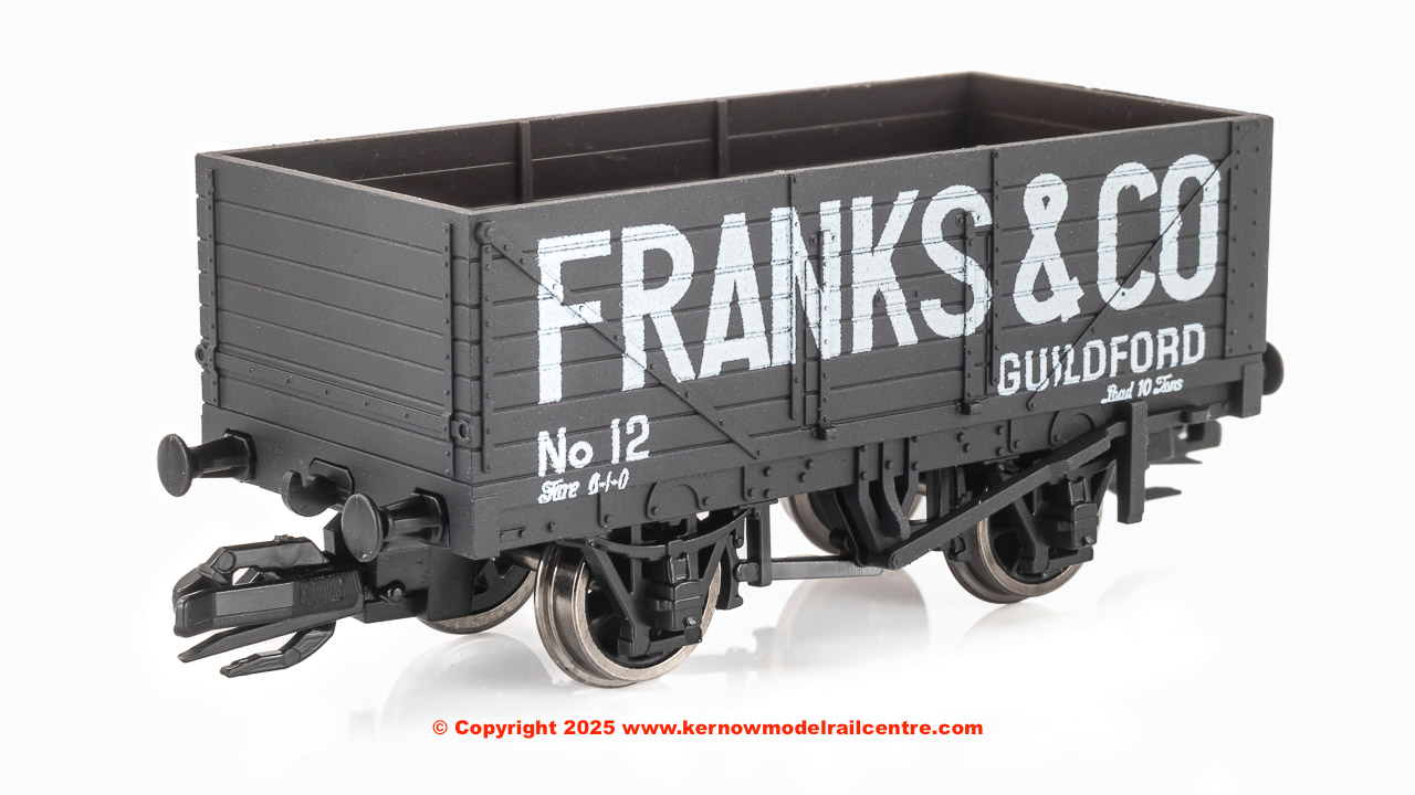 We announce our first Exclusive TT:120 Gauge seven plank open wagon in the livery of Franks and Co of Guildford, numbered 12.