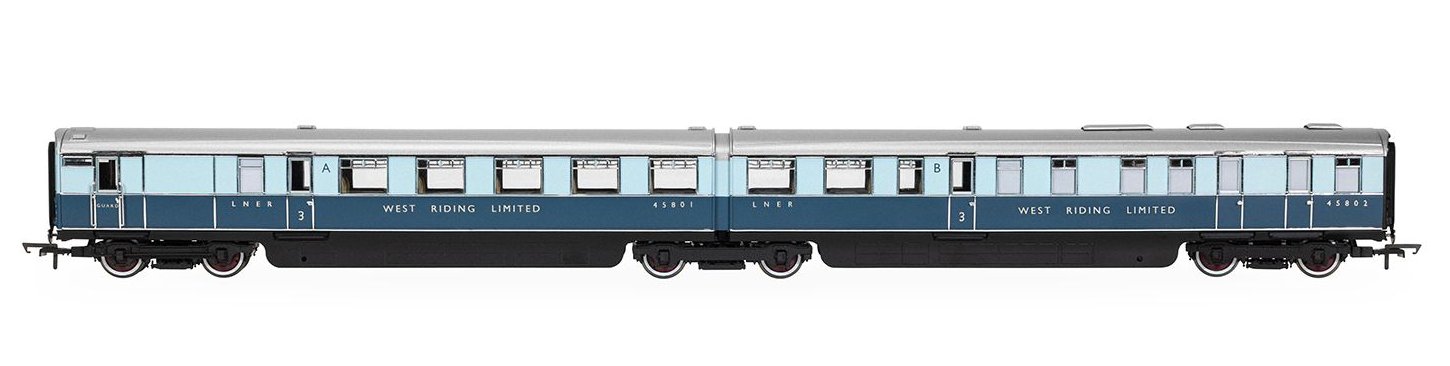 A new set of carriages was built that was identical to the ‘Coronation’ with four twin articulated coaches, though not the streamlined beavertail observation car, and named the ‘West Riding Limited’. Carriages were in pairs, sharing a bogie between the two, thus reducing friction and improving ride quality.