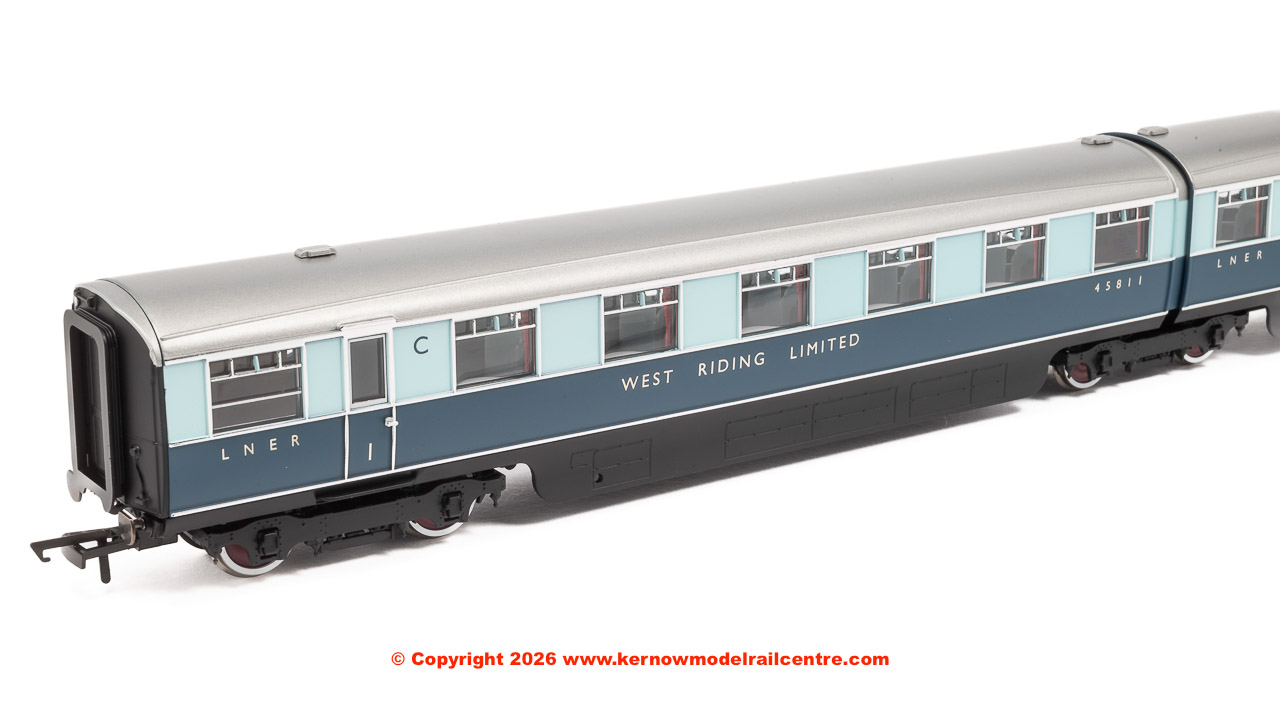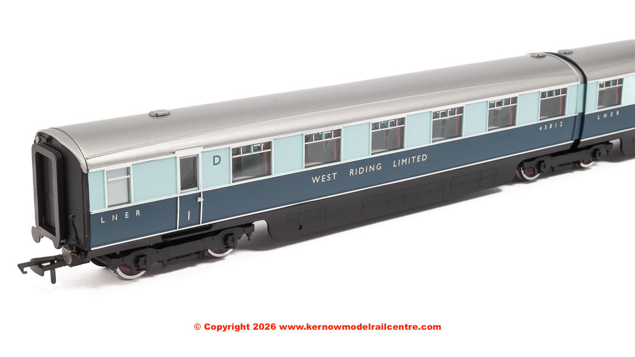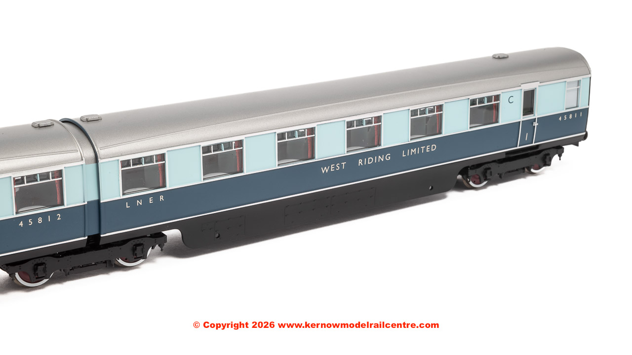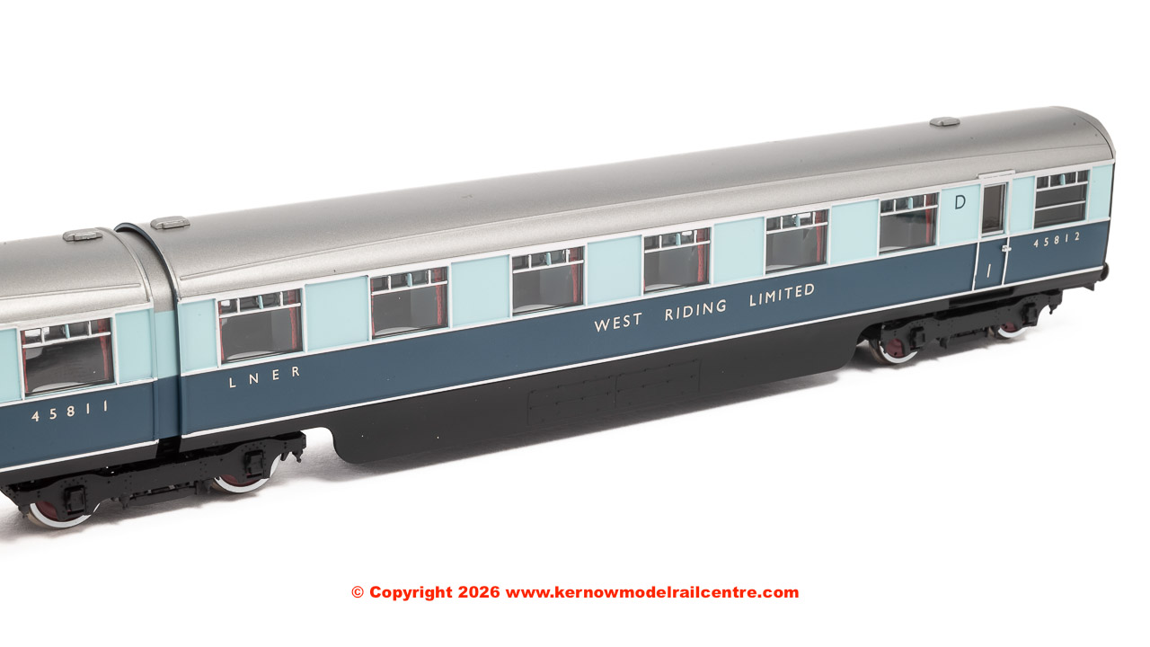 A new set of carriages was built that was identical to the ‘Coronation’ with four twin articulated coaches, though not the streamlined beavertail observation car, named the ‘West Riding Limited’. Carriages were in pairs, sharing a bogie between the two, thus reducing friction and improving ride quality.