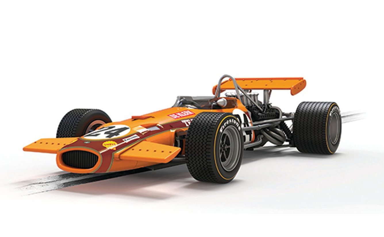 The Scalextric version reflects those details clearly, from the slim nose and period-correct aero to the unique cockpit layout and vivid race livery.