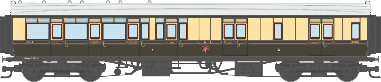 4P-021-104 Dapol GWR Corridor Toplight 1925 Choc.& Cream Lined Brake Third LH 3594