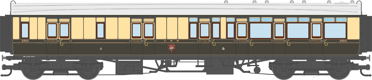 4P-021-105 Dapol GWR Corridor Toplight 1925 Choc.& Cream Lined Brake Third RH 3593