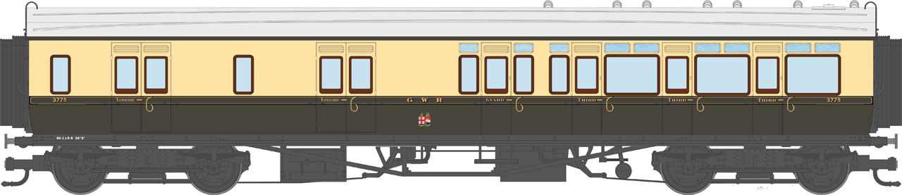 4P-021-205 Dapol GWR Corridor Toplight 1930 Choc.& Crm Twin Cities Brk Thrd RH 3775
