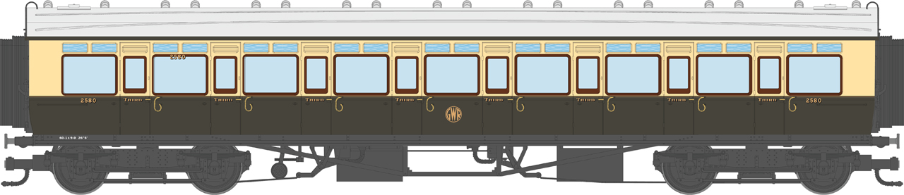 4P-021-301 Dapol GWR Corridor Toplight 1935 Choc.& Crm Roundel All Third 2580