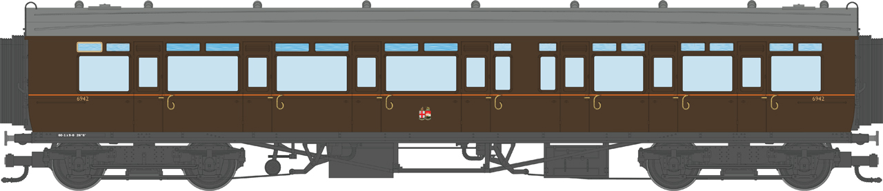 4P-021-402 Dapol GWR Corridor Toplight 1940 All Brown Twin Cities Composite LH 6942