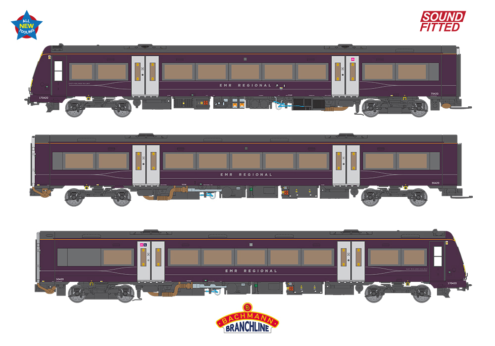 35-626SF Bachmann Class 170/4 3-Car DMU 170420 East Midlands Railways (EMR Regional) SOUND FITTED