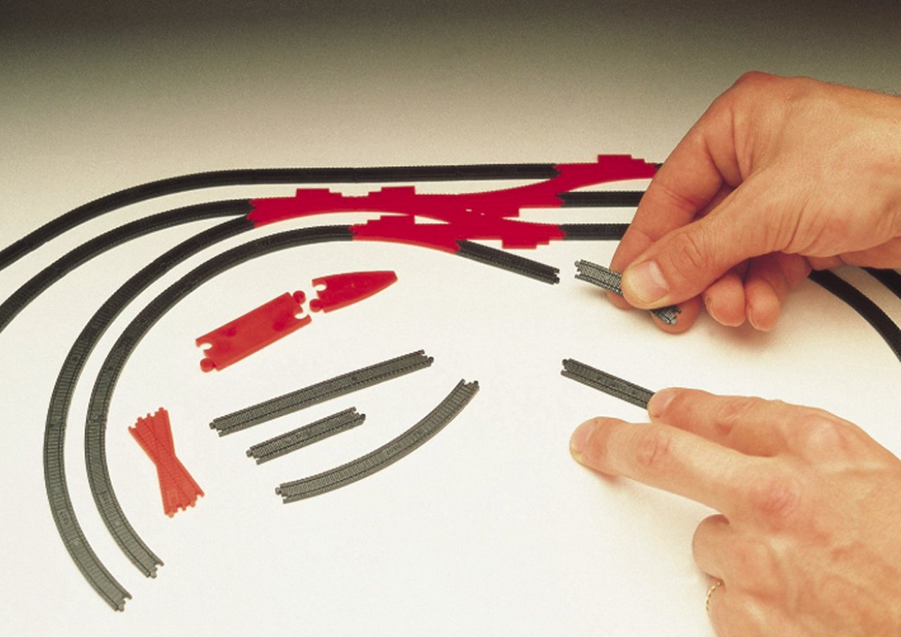 Before you spend money on the real track, model your track layout ideas with these quarter scale track section replicas. Sections clip together to build your layout in miniature. Pack contains more than 100 track pieces, representing most types of section that you may use.