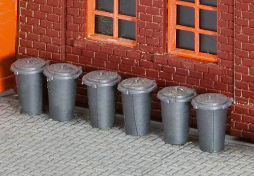 180905 Faller Rubbish Bins - Pack of 10 trash cans ready to place on your model railway.