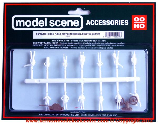 5202 model scene hikers, public service personnel, scouts and a cart unpainted (pack of 14).