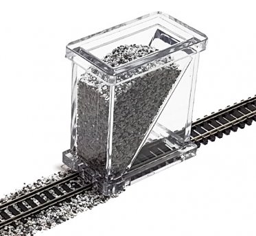 Slots underneath the spreader keeps your ballast in line, spreads the ballast on track and never on rails.