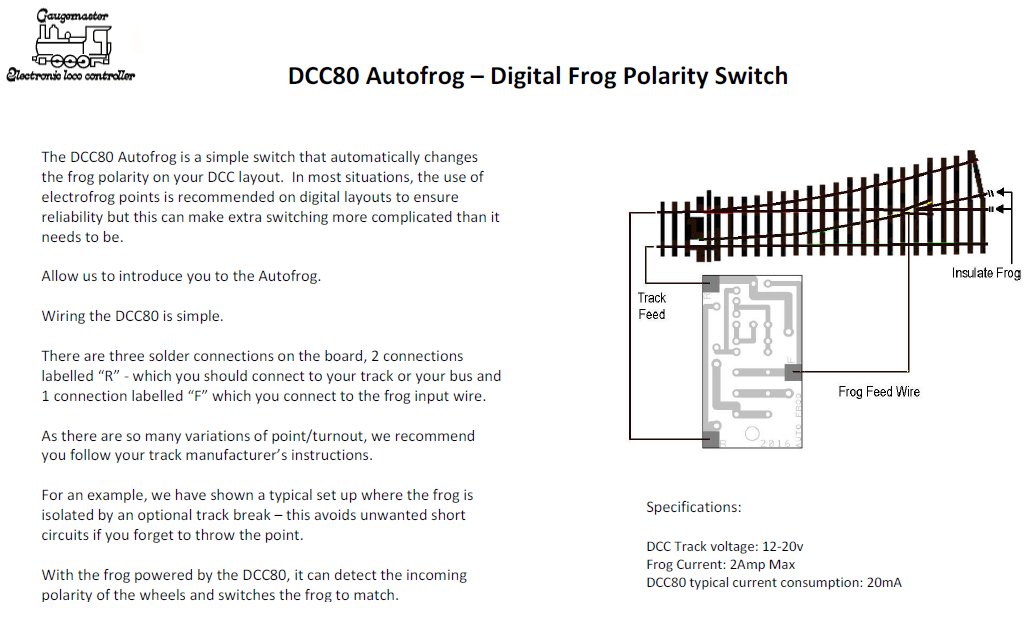 DCC80 Gaugemaster DCC Autofrog DCC80 Gaugemaster DCC Autofrog