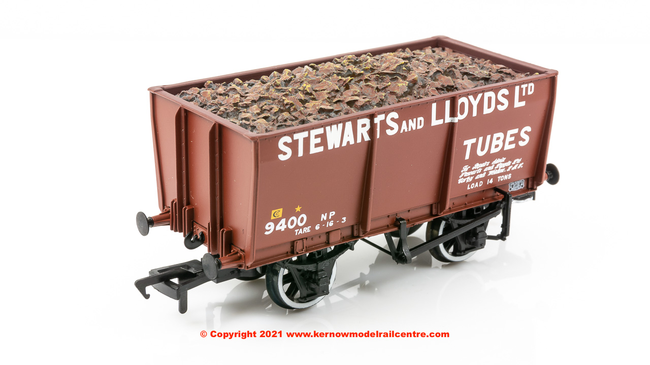 37-402 Bachmann 16 Ton Steel Slope-Sided Mineral Wagon number 9400 'Stewart & Lloyds' Red - Includes Wagon Load - Era 3.