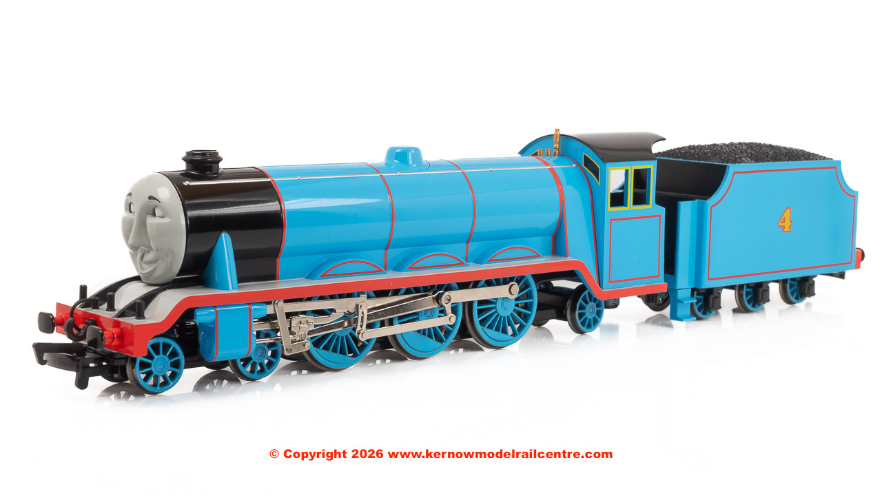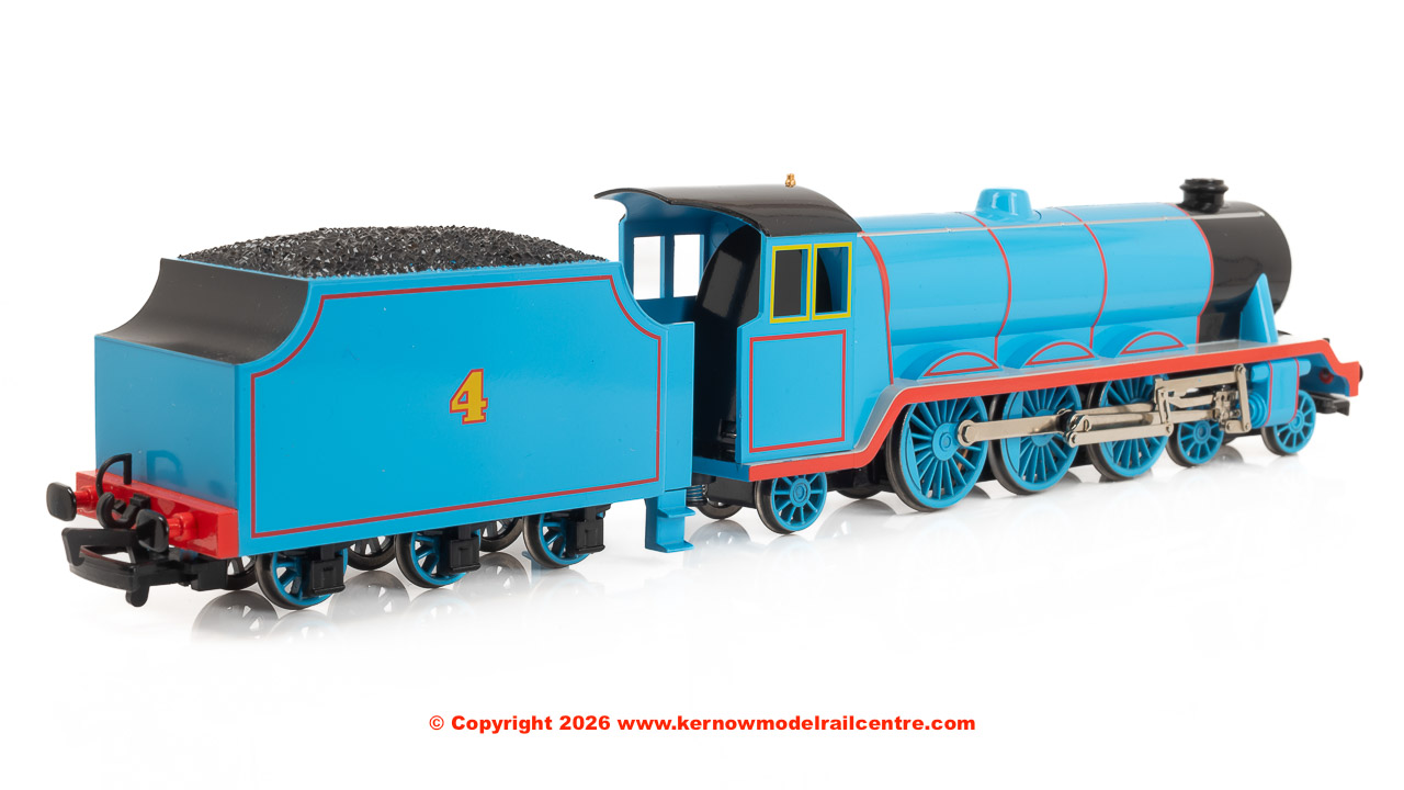 Gordon is a blue 4-6-2 ('Pacific' wheel arrangement) steam engine with the number 4 painted on his tender. Gordon first appeared in the 1st book in Reverend Wilbert Awdry's The Railway Series, entitled 'The Three Railway Engines,' in 1945 and two other books in the series are dedicated to him, No.8 'Gordon the Big Engine' and No.31 'Gordon the High Speed Engine.' He pulls the express coaches used on fast trains.