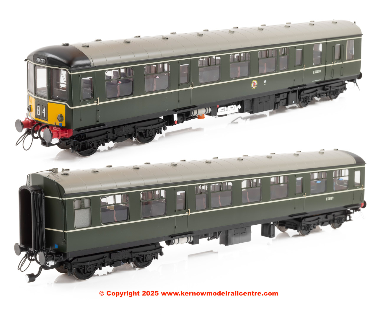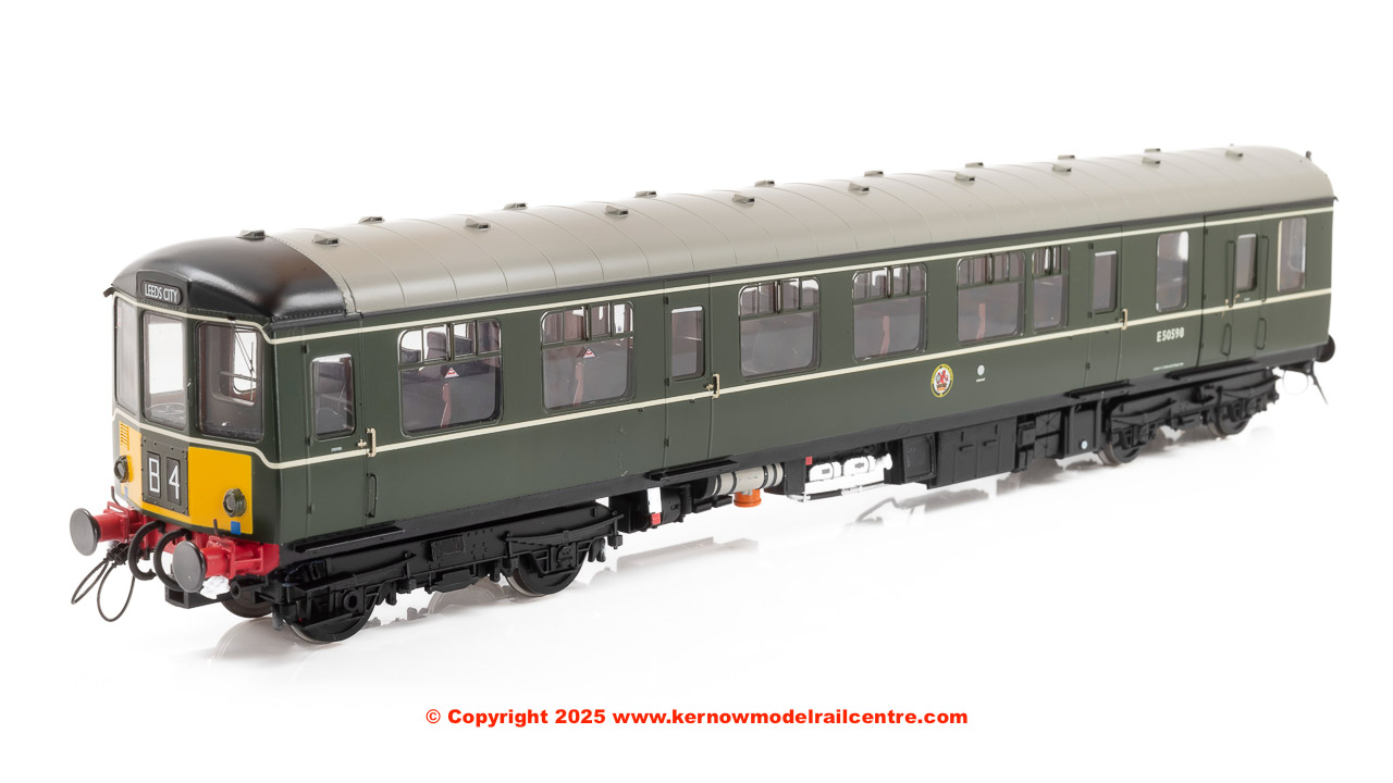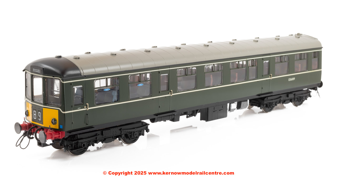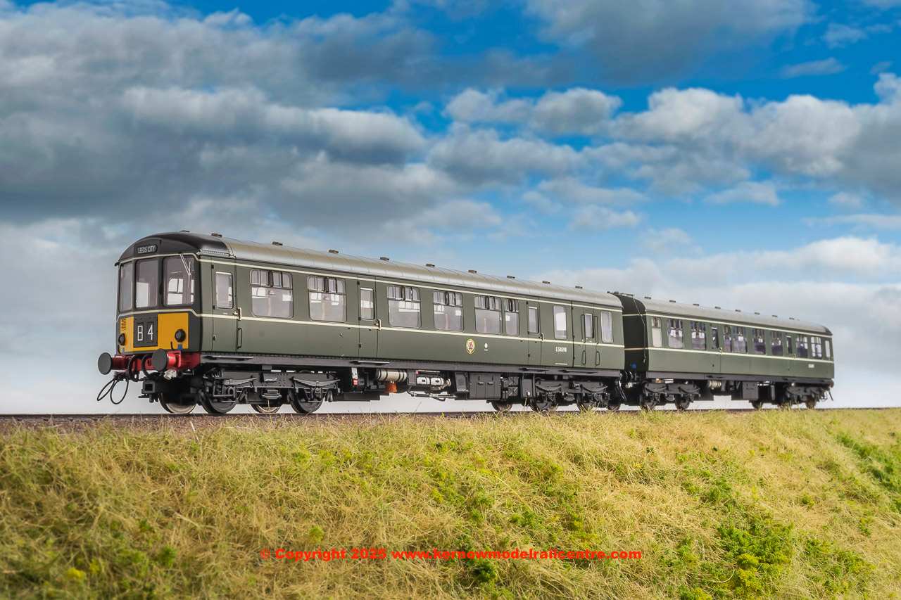 1452 Heljan Class 104 2 Car DMU Set in BR Green livery with small yellow panels.