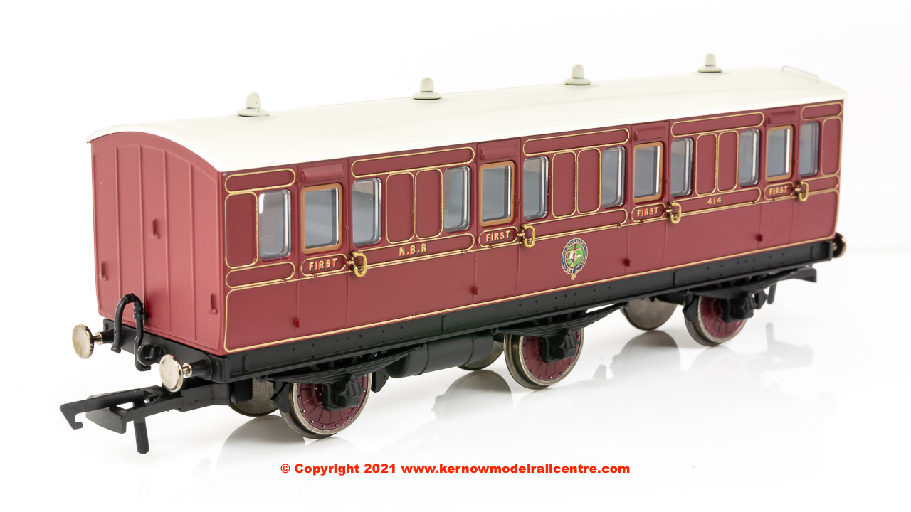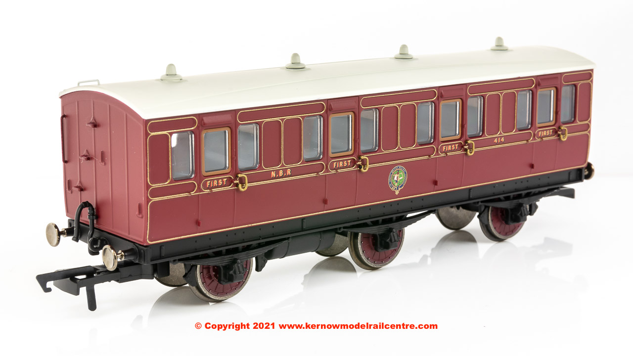 R40089 Hornby NBR 6 Wheel 1st Class Coach number 414 in NBR livery - Era 2 R40089 Hornby NBR 6 Wheel 1st Class Coach number 414 in NBR livery - Era 2