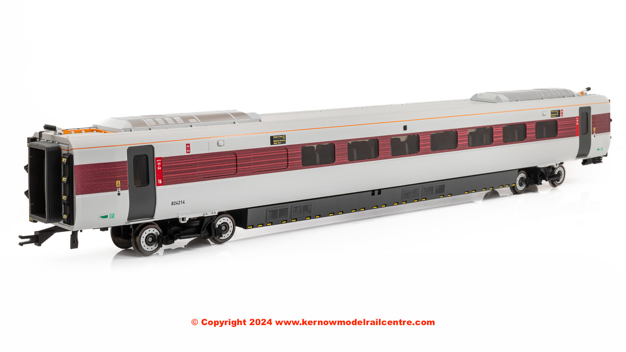 Shortly following the popular British Rail Class 801 'Azuma' EMU were the nine-car 801/2 sets, with two units (801205 and 801207) entering service on 18 November 2019 onto the London King's Cross - Edinburgh route. As of November 2020, all Class 801 units have now entered service with LNER. This LNER Coach Pack contains four 801/2 coaches: 827214, 826214, 824214, and 823214. Use these with R3965 to make up a prototypical 9 car set.