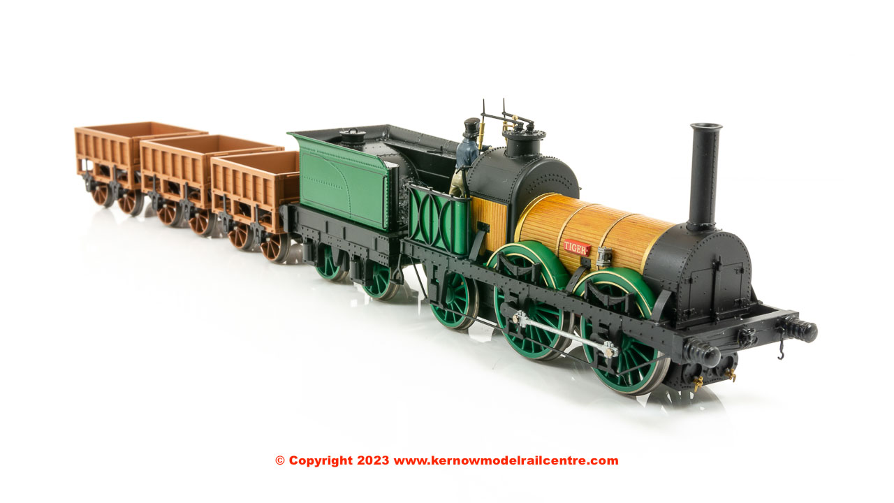In this pack, 'Tiger' is paired with coal wagons of the kind that would often be found in the early days of the L&MR. Coal traffic was reasonably common in the early days of the railway, with the substance required for the running of locomotives.