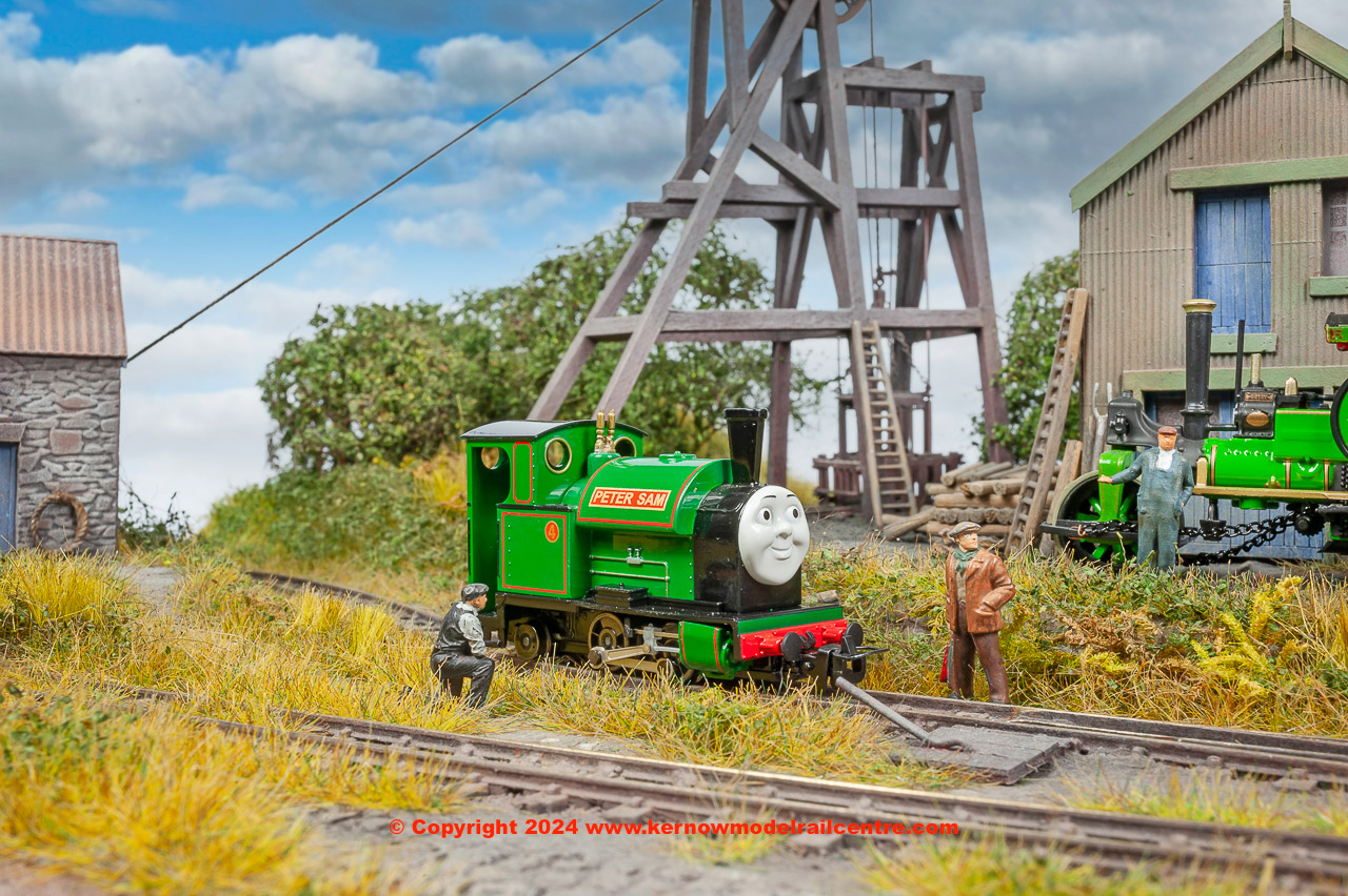 THOMAS & FRIENDS™ Peter Sam (diecast construction). Peter Sam is a happy and kind engine. He has a unique funnel that he loves. A hard worker by nature, Peter Sam seldom grumbles about late hours or extra work. Peter Sam was actually known as Stuart, but was changed when he came to Sir Topham Hatt's Railway. He is based on a Kerr, Stuart & Co. Ltd. 0-4-2ST narrow gauge engine. Bachmann carefully reproduces your favourite Thomas & Friends™ characters. Narrow Gauge Thomas & Friends™ products are OO/HO models that run on N scale track. All Thomas and Friends Narrow Gauge locomotives feature electric drive mechanisms, highly detailed Die Cast construction, all-metal wheels, and narrow gauge hook and loop couplers.