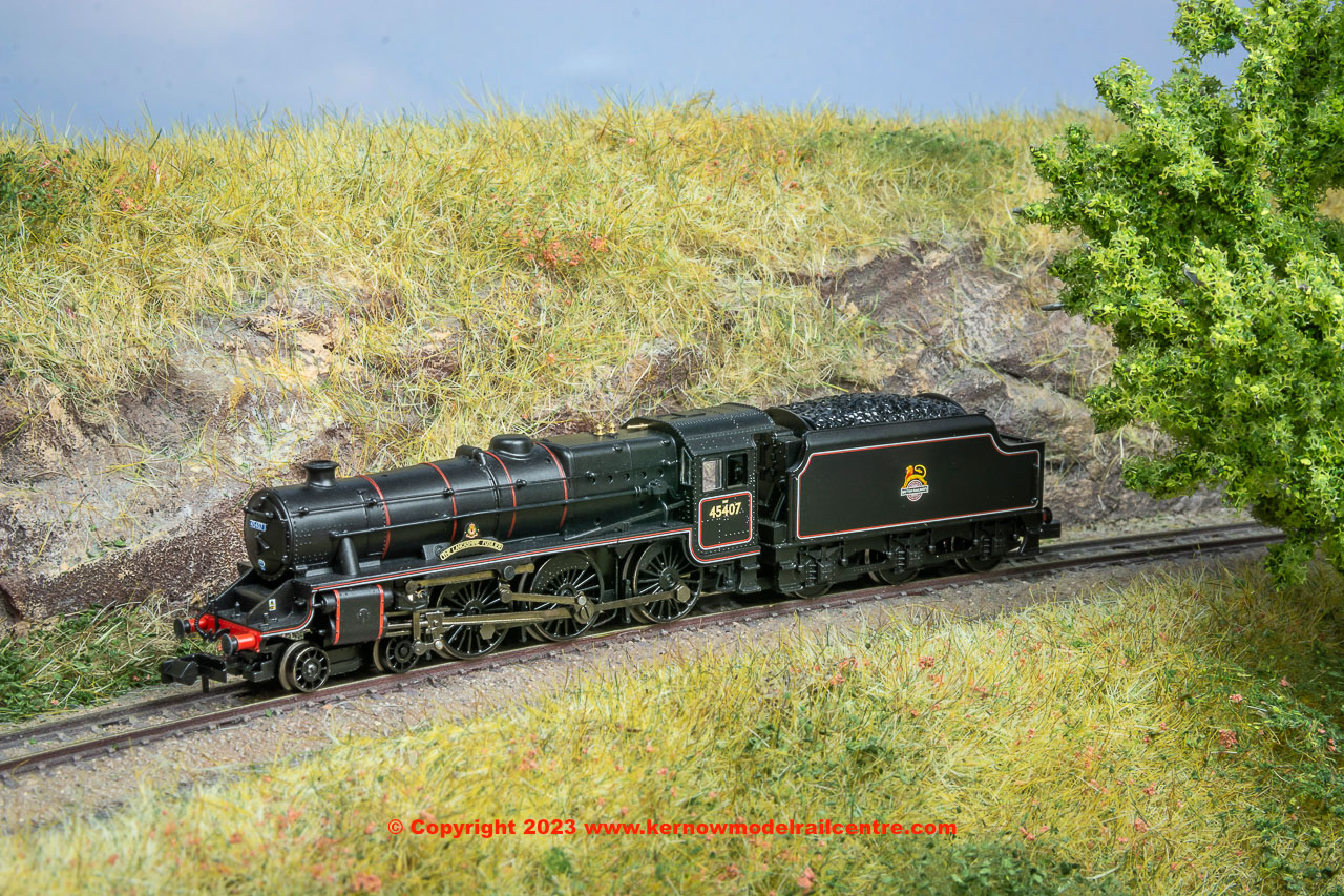 372-136A Graham Farish LMS 5MT Black 5 Steam Loco number 45407 "The Lancashire Fusilier" in BR Lined Black livery with early emblem 372-136A Graham Farish LMS 5MT Black 5 Steam Loco number 45407 "The Lancashire Fusilier" in BR Lined Black livery with early emblem 372-136A Graham Farish LMS 5MT Black 5 Steam Loco number 45407 "The Lancashire Fusilier" in BR Lined Black livery with early emblem