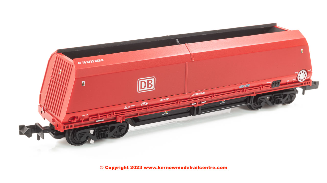 The ‘cut and shut’ nature of the rebuilds is evidenced by the weld lines midway along the wagon sides and these marks are captured in model form, along with details such as the hopper doors, handwheels and separate pipe runs. Each wagon runs on bogies fitted with metal wheelsets and with standard N scale couplings fitted into the NEM coupling pockets. DB Cargo’s bright red provides the base colour, against which the logo, safety warnings, instructions and TOPS information all in white contrasts. Buffers are supplied as optional fittings, allowing wagons to be configured as ‘inners’ without any buffers or as ‘outers’ which usually carry buffers at one end only.
