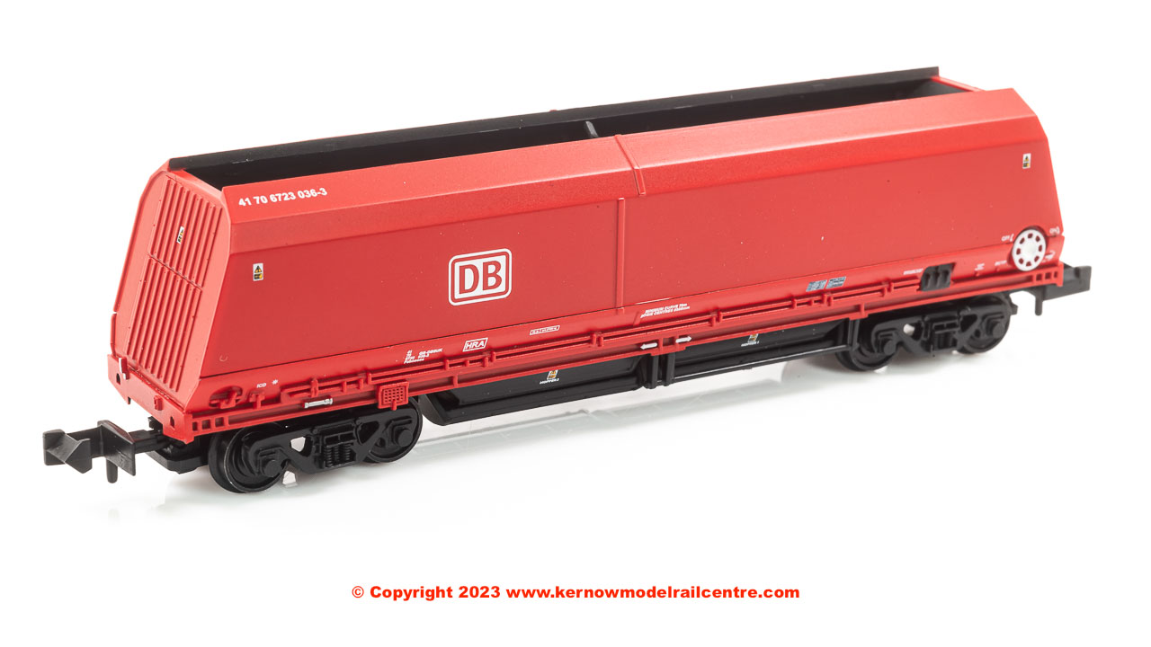 The HRA Bogie Hopper Wagon is the next modern freight wagon to receive the Graham Farish treatment and this model sports the vibrant red livery of DB Cargo. The first HRA entered traffic in 2017, being created by cutting down the HTA wagons, of which more than 1,000 were built for EWS to transport coal. With the phasing out of coal fired power stations, a new use for the HTAs was needed. As stone is far denser than coal, repurposing HTA wagons for aggregate was inefficient as they could not be fully loaded before becoming overweight, therefore shortening the wagons allowed the same payload to be moved with a shorter length train than if unmodified HTAs were used. To create the HRAs, one hopper bay is removed from the HTA before the two ends are welded back together, and these changes are faithfully reproduced on these N scale models.