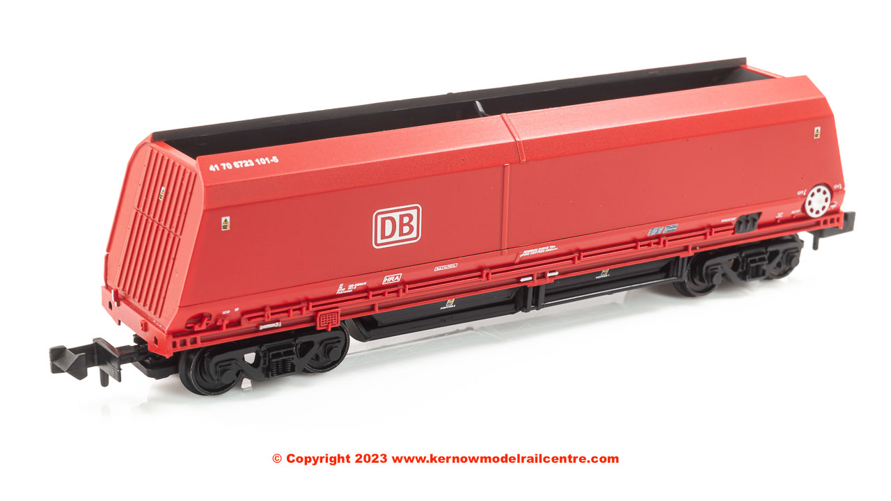 The HRA Bogie Hopper Wagon is the next modern freight wagon to receive the Graham Farish treatment and this model sports the vibrant red livery of DB Cargo. The first HRA entered traffic in 2017, being created by cutting down the HTA wagons, of which more than 1,000 were built for EWS to transport coal. With the phasing out of coal fired power stations, a new use for the HTAs was needed. As stone is far denser than coal, repurposing HTA wagons for aggregate was inefficient as they could not be fully loaded before becoming overweight, therefore shortening the wagons allowed the same payload to be moved with a shorter length train than if unmodified HTAs were used. To create the HRAs, one hopper bay is removed from the HTA before the two ends are welded back together, and these changes are faithfully reproduced on these N scale models.
