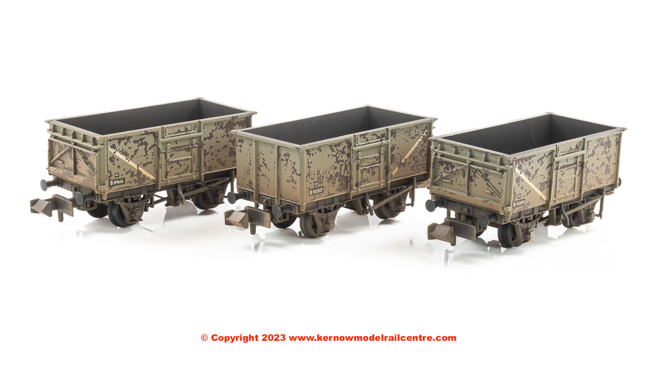 Each of the wagons in this triple pack feature end doors, and side doors which have top flaps – this aided manual unloading in coal yards – and the models features separately fitted door stops, brake gear, linkage and hand brake levers, and is fitted with metal buffers.