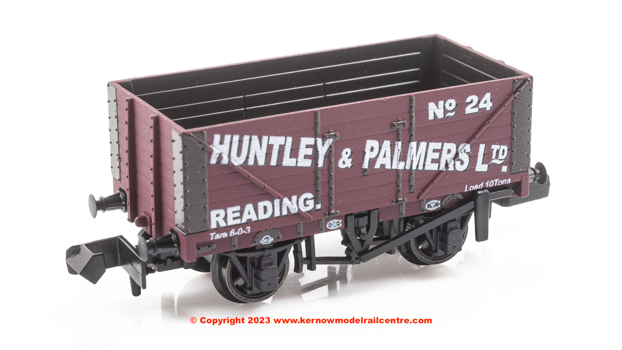Peco say "Another new arrival into stock is this attractive 7 plank open wagon - Huntley & Palmers, based in Reading, Berkshire, was a well-known biscuit manufacturer that used these wagons to bring coal into their factory. "