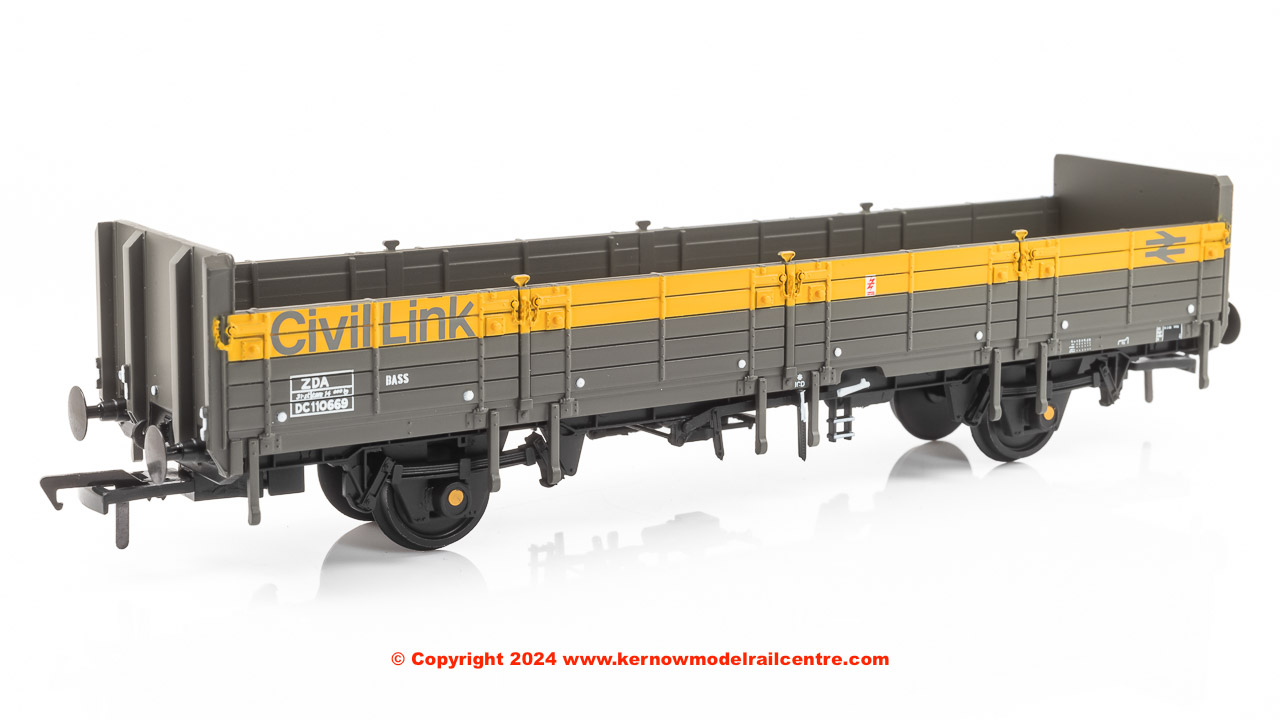 38-047 Bachmann BR ZDA Bass Open Wagon number DC110669 - Low Ends BR Engineers 'Civil Link' Grey & Yellow