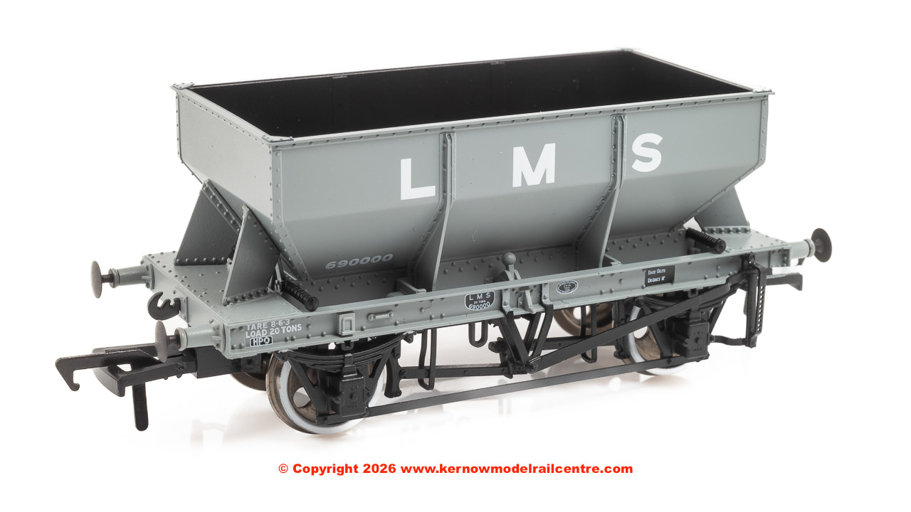 Rapido say "Rapido Trains UK is proud to announce we will be adding the OO gauge LMS 20T iron ore hopper and its variants to our ever-expanding wagon range. Constructed between the early-1920s and mid-1930s the LMS produced numerous Iron Ore Hoppers using a variety of diagram numbers, however, for the most part, they looked identical. Built by several contractors the diagram 1893, 1894, 1941, and 1942s only differed with the steel that was used to construct them and a handful of buffer varieties. With a carrying capacity of 20 tons, the Iron Ore wagons were used for carrying a plethora of raw materials throughout their lifetime, and received numerous extensions, additions and alternations in their later life to accommodate their new owners. Several were converted to carry lime, as such they required a covered roof with a loading hatch. These were issued a new diagram number as Dia. 2194.