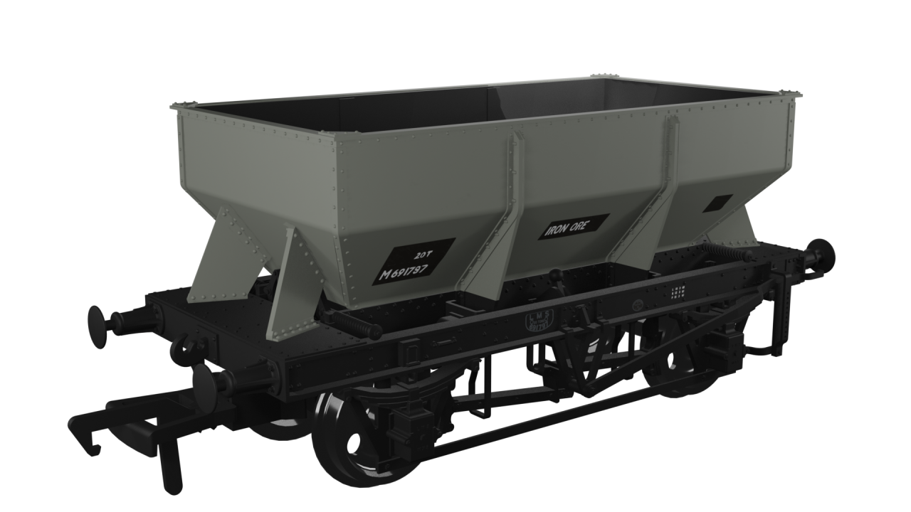 Rapido say "Rapido Trains UK is proud to announce we will be adding the OO gauge LMS 20T iron ore hopper and its variants to our ever-expanding wagon range. Constructed between the early-1920s and mid-1930s the LMS produced numerous Iron Ore Hoppers using a variety of diagram numbers, however, for the most part, they looked identical. Built by several contractors the diagram 1893, 1894, 1941, and 1942s only differed with the steel that was used to construct them and a handful of buffer varieties. With a carrying capacity of 20 tons, the Iron Ore wagons were used for carrying a plethora of raw materials throughout their lifetime, and received numerous extensions, additions and alternations in their later life to accommodate their new owners. Several were converted to carry lime, as such they required a covered roof with a loading hatch. These were issued a new diagram number as Dia. 2194.
