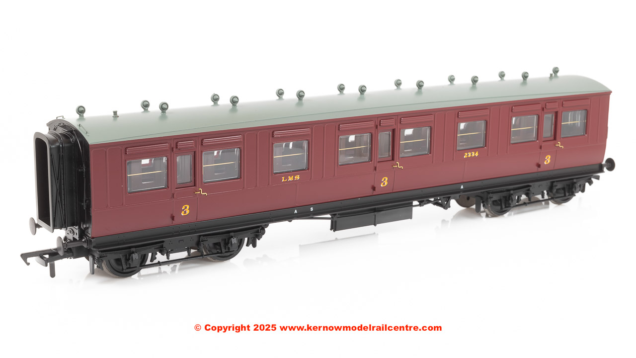 39-873A Bachmann LNWR 50ft Arc Roof Third Corridor Coach number 2334 - LMS Crimson Lake