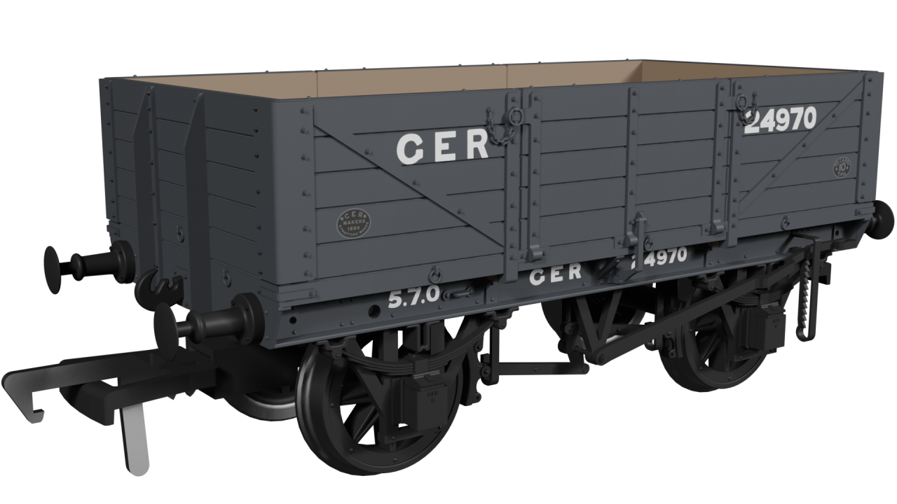 Rapido say "Rapido Trains UK is proud to announce we will be heading east and expanding our range of Great Eastern models with the brand-new OO Gauge GER 5-Plank and 7-Plank all-purpose General Merchandise Open Wagons. The Great Eastern Railway operated a vast network of lines serving Northeast London's densely populated suburbs and East Anglia’s agrarian market towns, villages, coastal resorts and ports. General merchandise traffic dominated the company’s goods receipts and further grew in importance during the 1890s, while mineral traffic maintained a steady growth. This area of the country was devoid of heavy industry and mines, so the company imported coal mainly from Nottinghamshire and Yorkshire collieries. In the 1890s the company prepared against any disruption of its supply or services from strike action by employing a finely-tuned and aggressive coal-buying policy which paid dividends during the miners’ strike of 1893 and 1912. Huge stockpiles at all the major depots waxed and waned in size as prices fluctuated, and to supplement the company’s dedicated locomotive coal trucks during times of heavy purchasing, a fleet of reliable all-purpose wagons suitable for carrying both general merchandise and minerals were built to help transport coal to the region from the Midlands. The humble high-sided open wagon was the mainstay of the fleet, with Diagram17s being the most numerous of them all.