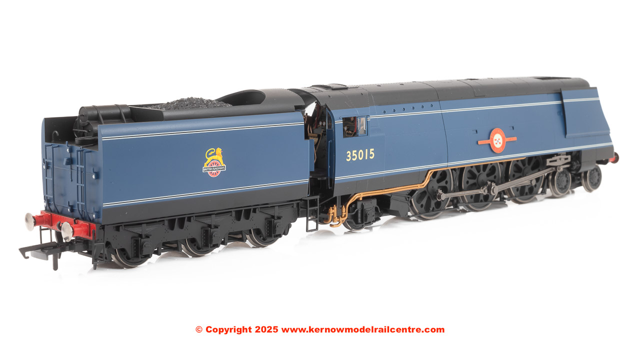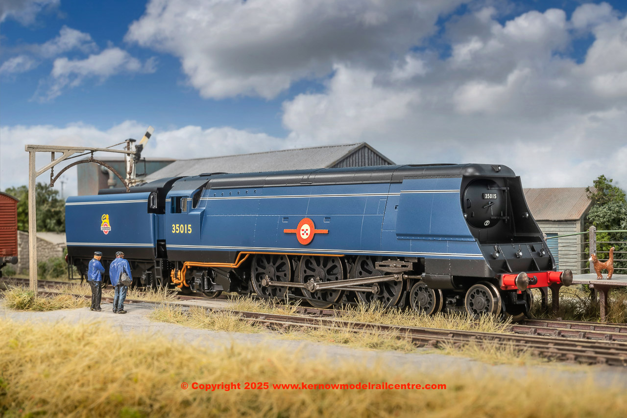 This locomotive was completed at Eastleigh Works and entered service in March 1945. It was numbered 21C15 and named ‘Rotterdam Lloyd’ in November 1945 after Dutch shipping company Rotterdamsche Lloyd, which operated passenger and mail services between Rotterdam and the Dutch East Indies, and became Royal Rotterdam Lloyd in 1947. The locomotive was renumbered to 35015 in June 1949, following the nationalisation of the railways the previous year, and was rebuilt at Eastleigh in June 1958. Always based at either Stewarts Lane or Nine Elms, it was withdrawn from the latter in February 1964 and scrapped in the following December.