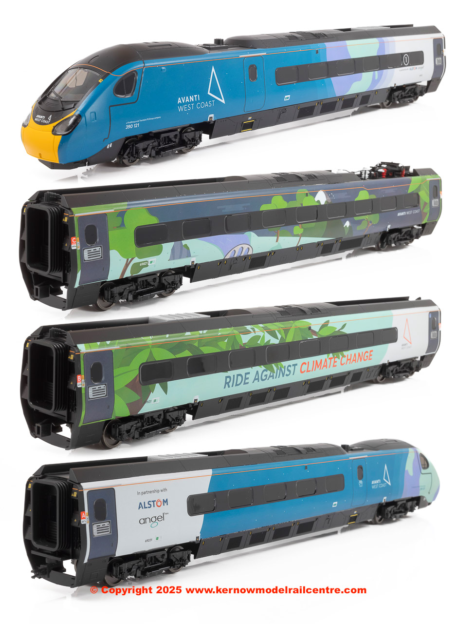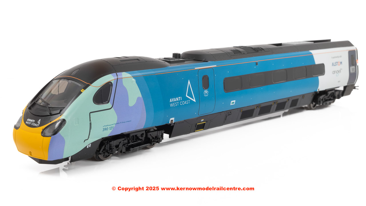 First introduced in July 2002 for high-speed electric passenger services, 53 eight-car units were initially built for use on the West Coast Main Line and leased from Angel Trains, initially to Virgin Trains, but from December 2019 transferred to Avanti West Coast. A further four of the tilting sets were added to the fleet between 2010 and 2012. From 2012, 31 of the original units were increased to 11-coach sets, including 390121, which in 2021 was decorated in a special ‘Ride Against Climate Change’ livery for Glasgow Cop26