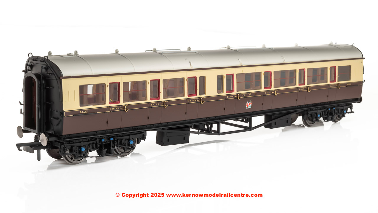 R40468 Hornby GWR Collett Bow Ended Corridor Composite Coach Right Hand number 6522 - GWR Chocolate & Cream - era 3 R40468 Hornby GWR Collett Bow Ended Corridor Composite Coach Right Hand number 6522 - GWR Chocolate & Cream - era 3
