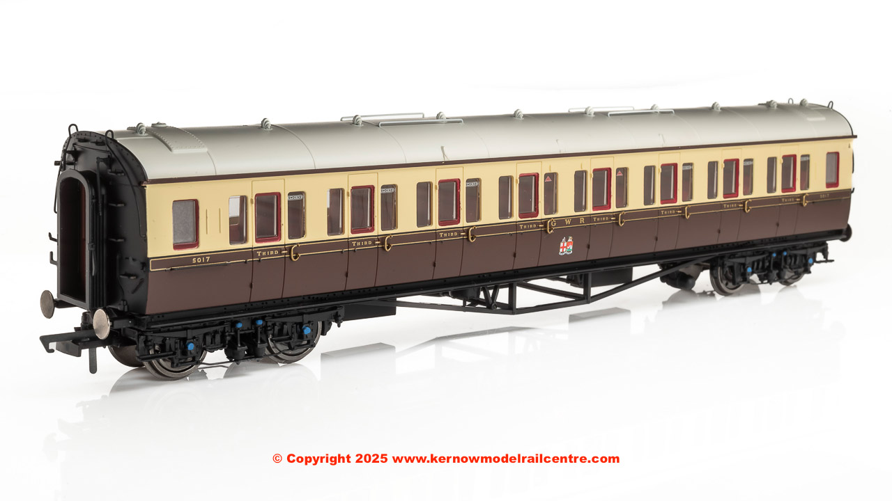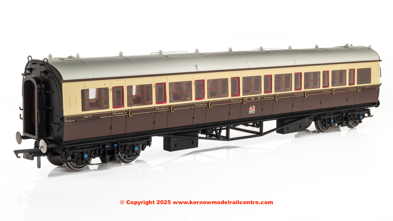 R40469 Hornby GWR Collett Bow Ended Corridor 3rd Coach number 5017 - GWR Chocolate & Cream - era 3 R40469 Hornby GWR Collett Bow Ended Corridor 3rd Coach number 5017 - GWR Chocolate & Cream - era 3