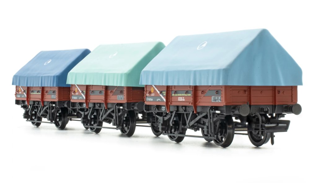 Accurscale say "The Accurascale clay hood is able to reproduce these wagons from when they were first built, across various modifications right up to the point of withdrawal. The extensive tooling suite allows Accurascale to have the ability to model different axle boxes, buffers and hood configurations, including the tie down hooks that were added for the later pent hoods in a different position to the earlier “discs” that had been used for the tarpaulin sheets. The sheets/hoods on the new clayhood wagons are removable showing a fully detailed interior and tarpaulin bar (if fitted) with correctly oriented longitudinal floor planks. The wagons feature a diecast underframe and axles running in brass bearings for super smooth running."
