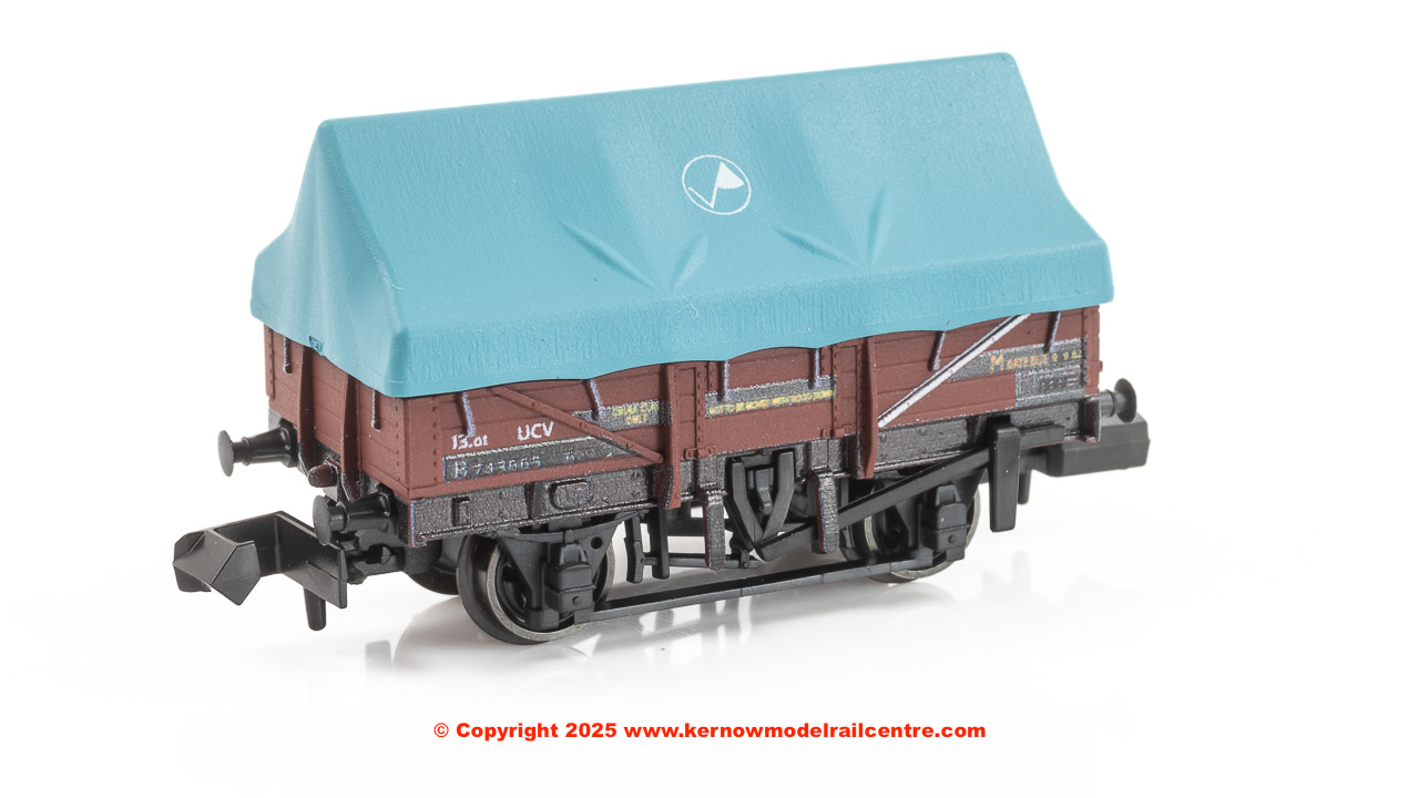 Peco say "China clay traffic from Cornwall requires special handling as the mineral can suffer from contamination if allowed to become wet. Pre-nationalisation there were many different vehicles but from the late 1940s and early 50s a new standard china clay wagon (then referred to as a “Clay-Tip”) was introduced by the GWR and British Railways. Eventually 875 wagons were built and these lasted well into the 1970s, after which the fleet was reduced as volumes declined. They operated all internal Cornish china clay trains and on a long-distance service between Cornwall and the Staffordshire potteries. These wagons featured end-opening doors to allow the clay to be released by tipping the wagon. Originally the wagons were covered by tarpaulins, but this method was difficult to handle, damage in the tarps causing leaks and the generally tying and untying of ropes being an inefficient process. So in the mid-70s the idea of creating a “tent” cover was introduced, allowing water to run off and the new arrangement was less likely to attract damage. The “hoods” as they were referred to were coloured sky blue in recognition of the ECC company colours, although in no time the china clay caused them to become much paler!  In the era of the BR “TOPS” system the wagons were coded UCV but in 1983 that code was changed to OOV (no physical changes occurred to the wagons). Our models represent these types from a different period in time.