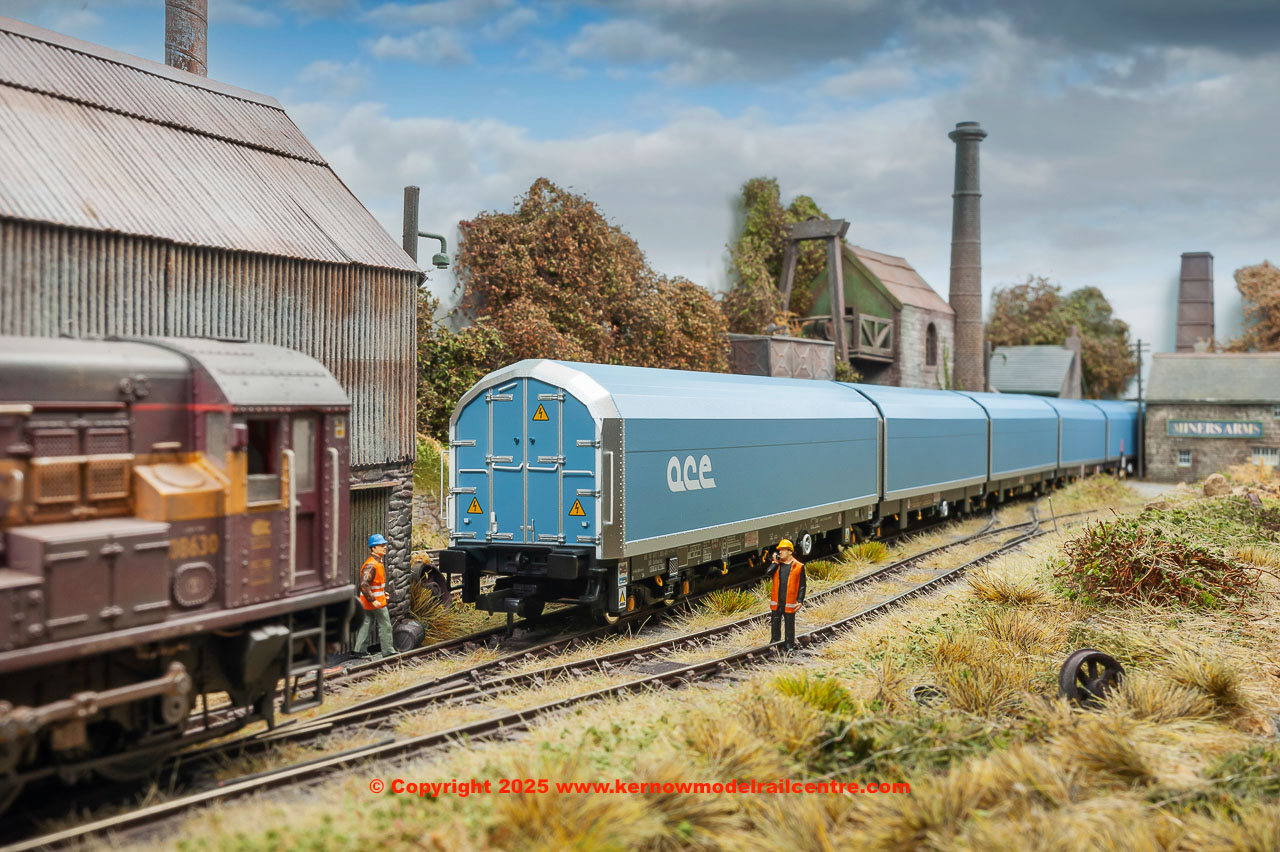 Revolution Trains say "60 five-unit WIA car carrier sets were ordered by BR’s Railfreight Distribution sector ahead of the opening of the Channel Tunnel in 1994. The WIA car carriers were designed to offer complete protection and are double-decked - the entire roof canopy can be raised or lowered as one unit to aid loading and unloading. All of our models feature: