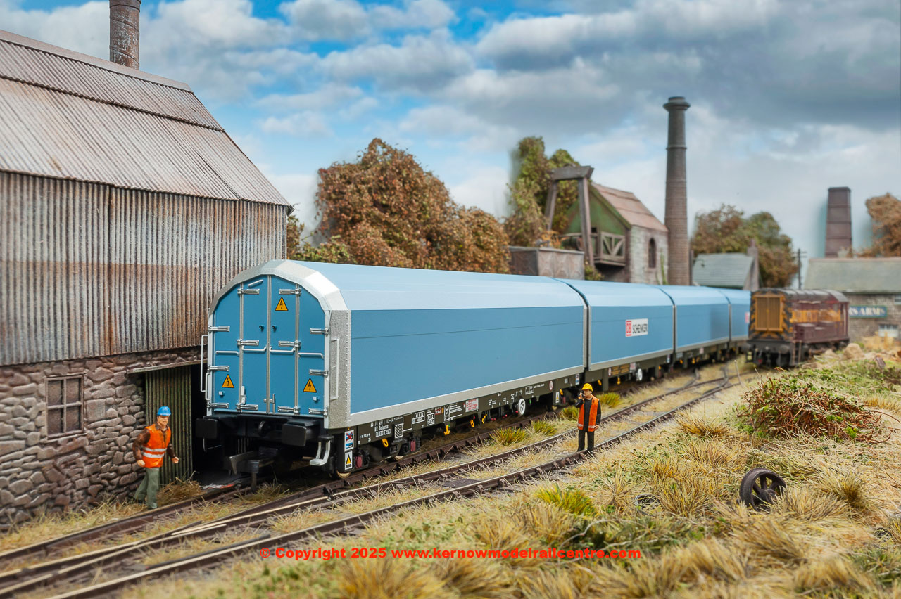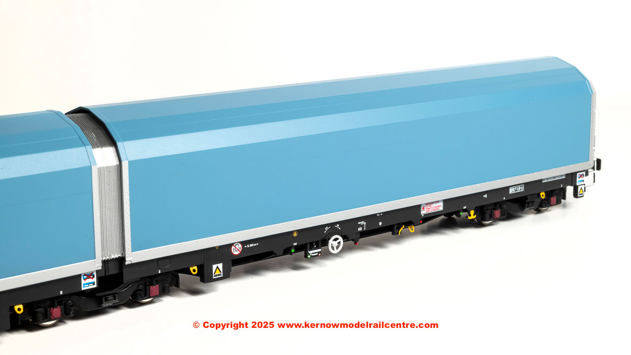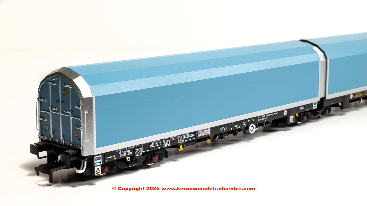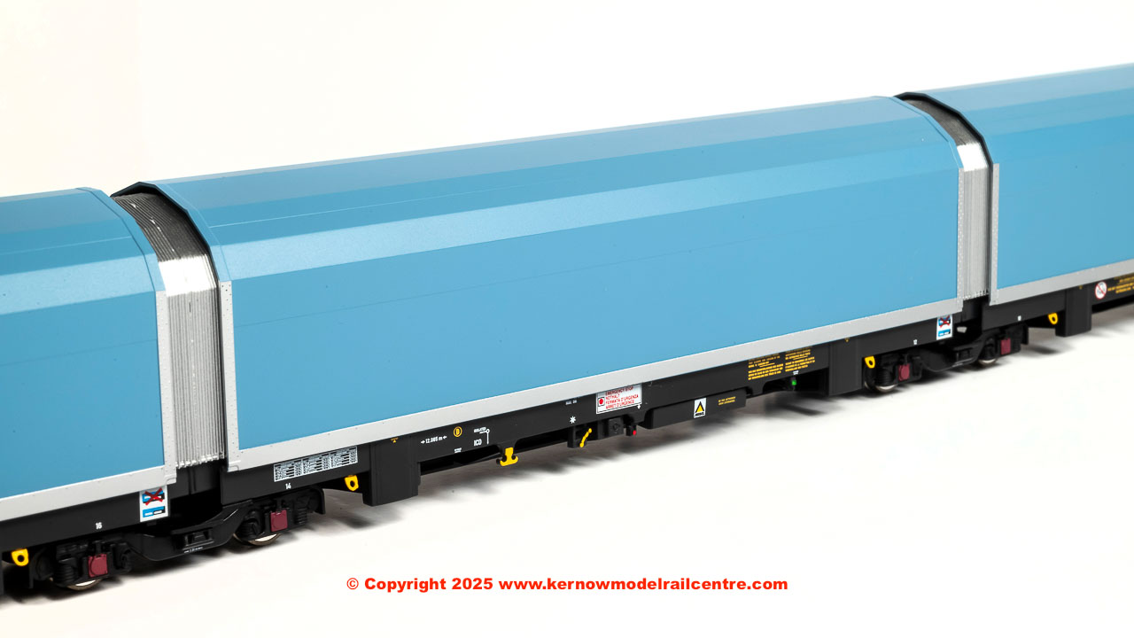 • pack of 5 articulated wagons (each individually numbered and with prototypical livery variations) in pale blue livery with a variety of brandings
