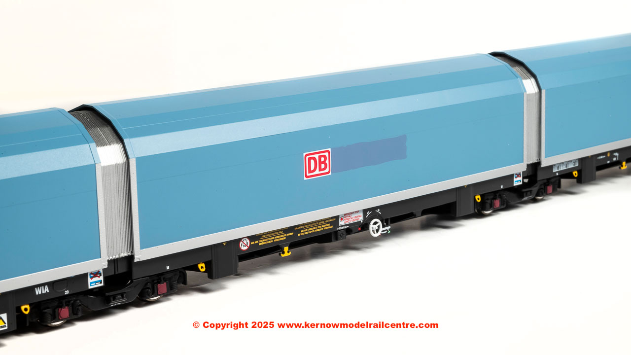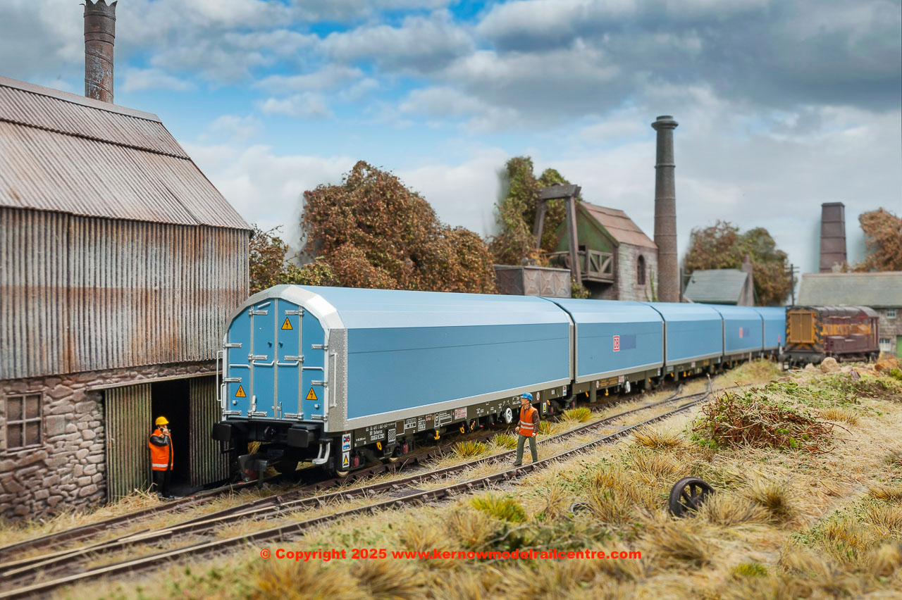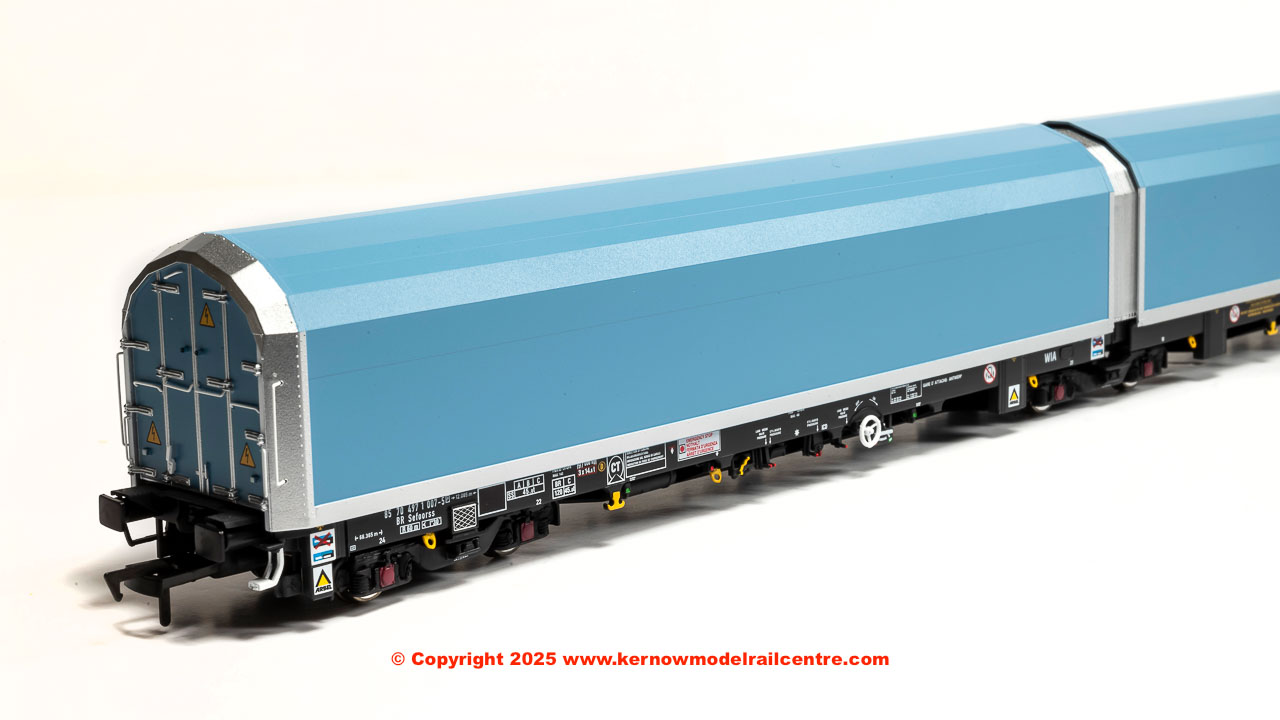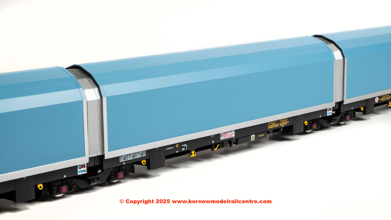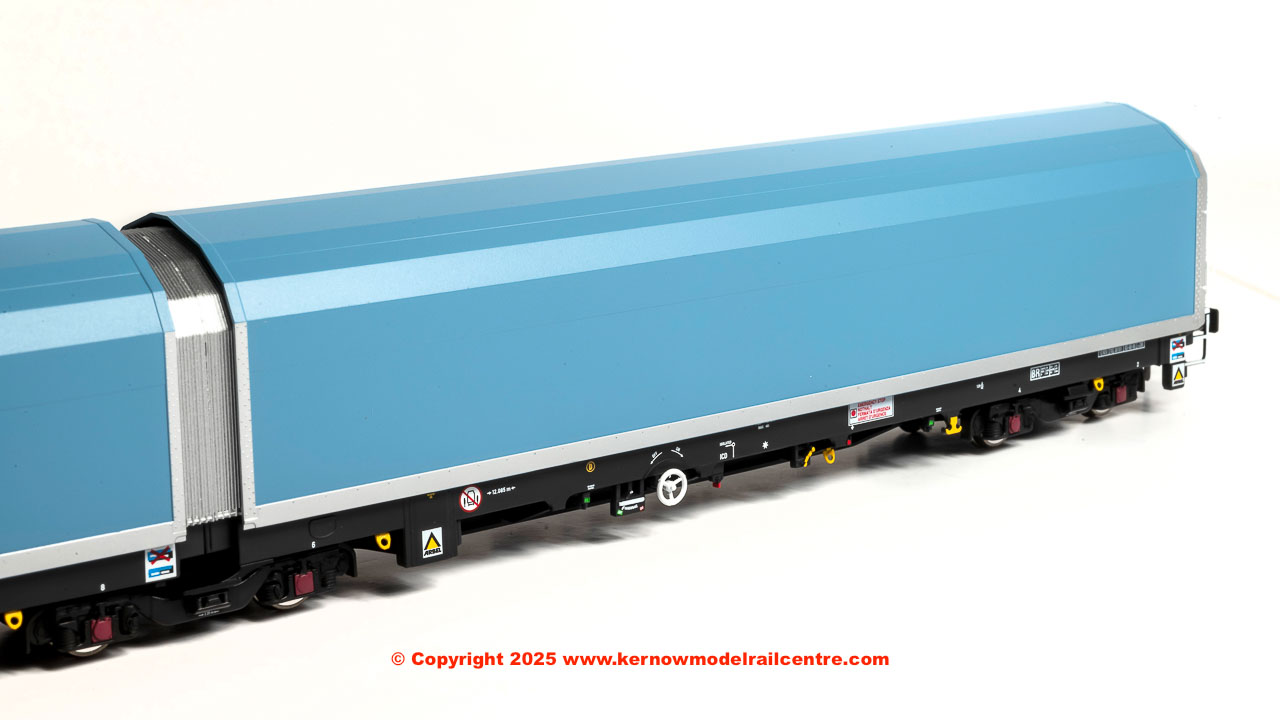 • pack of 5 articulated wagons (each individually numbered and with prototypical livery variations) in pale blue livery with a variety of brandings