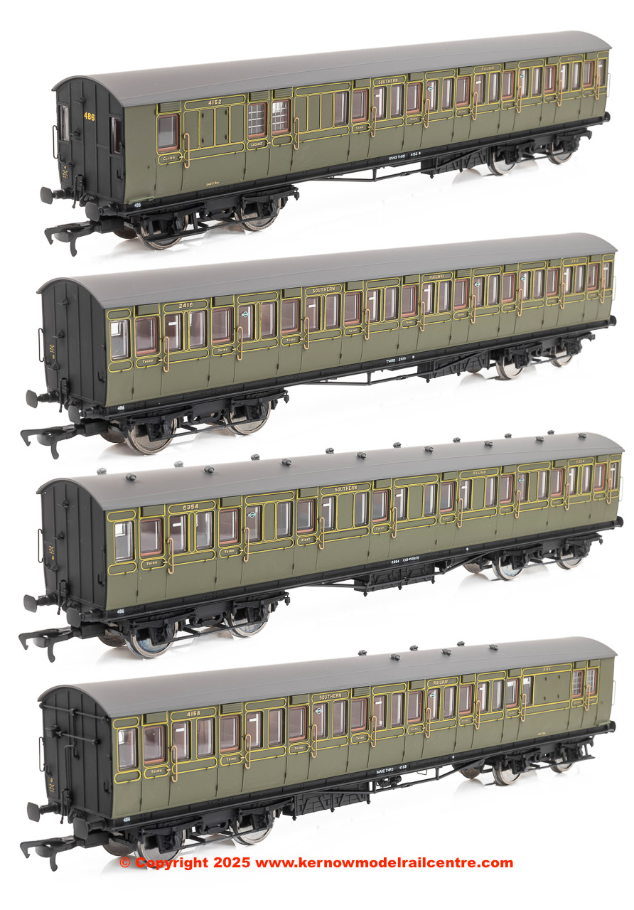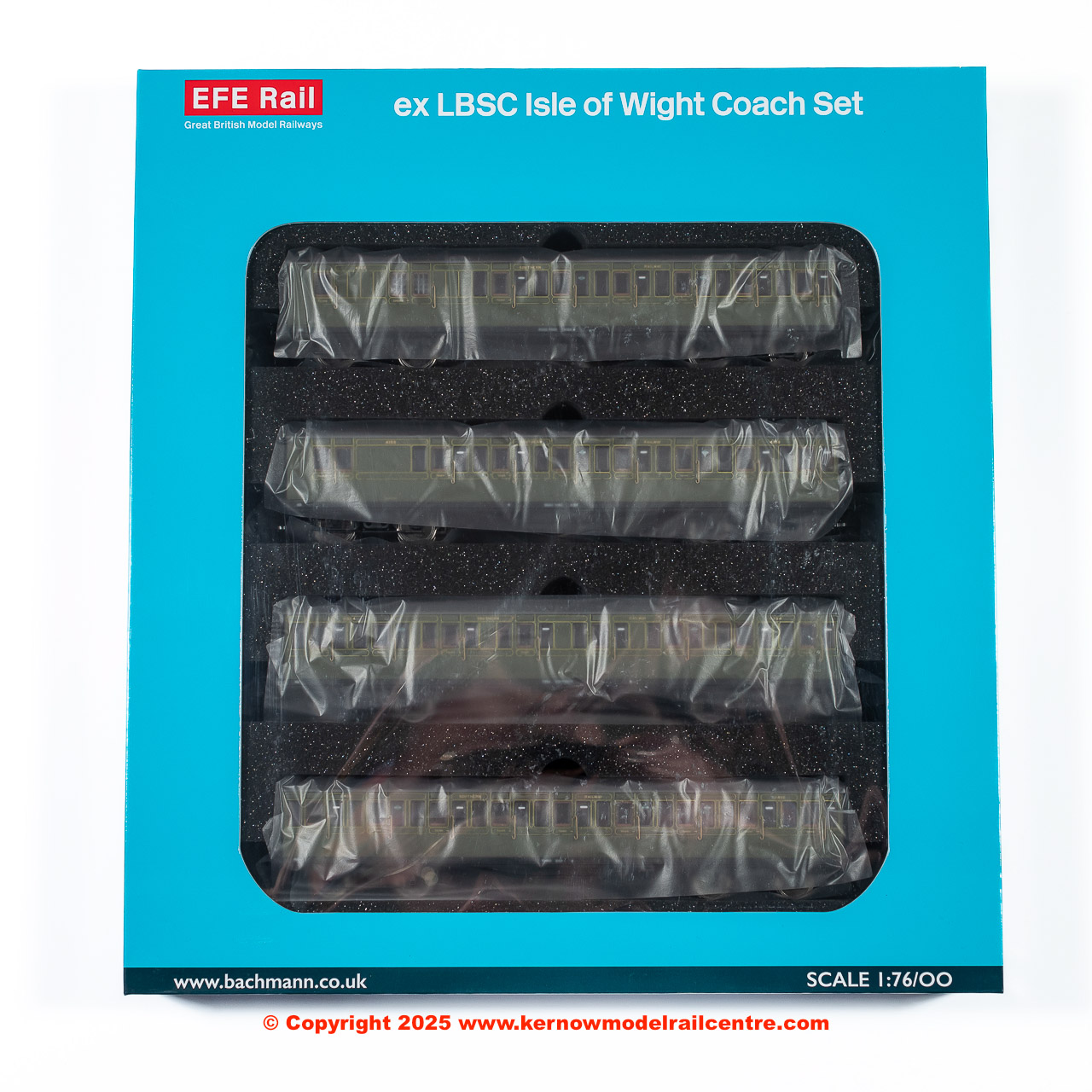 The Southern Railway (SR) took over operations of the railways on the Isle of Wight upon Grouping in 1923, inheriting an eclectic mix of locomotives and rolling stock. To replace many of these antiquated vehicles, ageing stock from the mainland was given a second life on the island and in the late-1930s, sixty former London Brighton & South Coast Railway (LBSCR) coaches arrived after having been rebuilt onto new 54ft chassis and fitted with Westinghouse brake equipment. It is these vehicles which have been modelled in OO Scale exclusively for Bachmann’s EFE Rail range to produce this 4-coach pack.