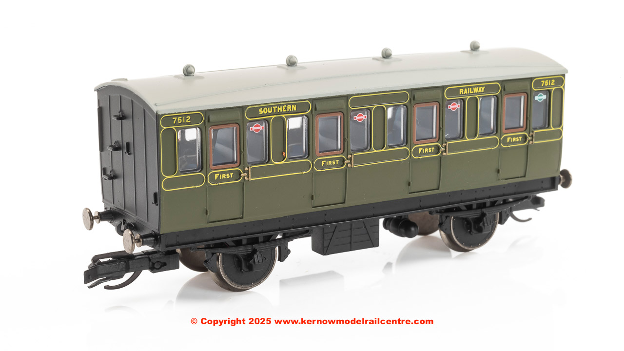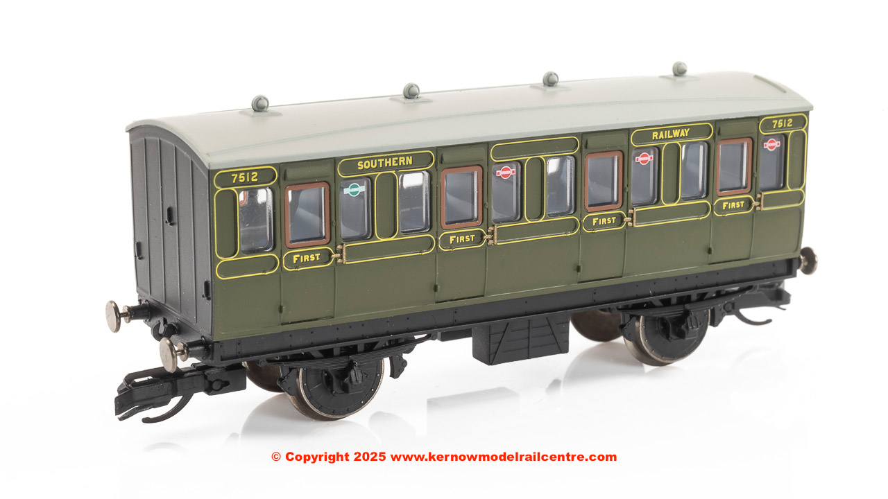 Hornby’s TT:120 SR First Class Four-Wheel Coach is a finely detailed model capturing the charm of early 20th-century rail travel, featuring a distinctive four-compartment design in authentic SR green livery with crisp First Class markings. Perfectly scaled this coach brings a touch of heritage to any TT:120 layout, evoking the golden age of British rail.