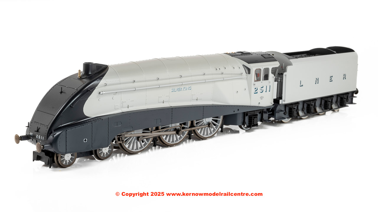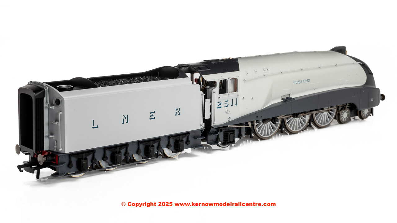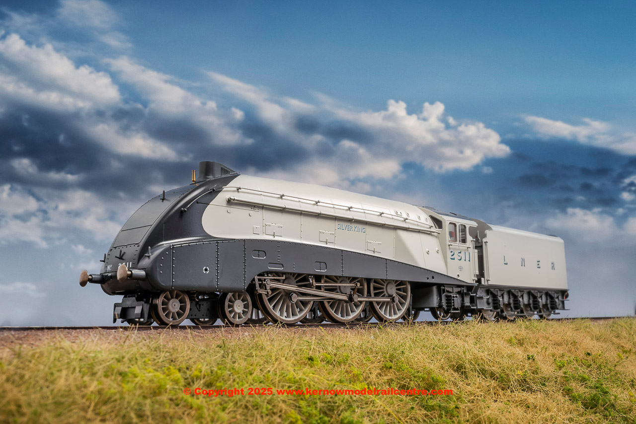 A striking member of Sir Nigel Gresley’s legendary A4 Pacific fleet, the Hornby Dublo LNER ‘A4’ Class 2511 ‘Silver King’ brings streamlined power and timeless elegance to the 90th Anniversary Collection. Expertly crafted this model has a flickering firebox and is DCC Ready with a 21-pin socket, allowing for easy digital conversion. The body and chassis being manufactured from metal, this model will pull any rake of coaches coupled to its tender. An accessories pack is included for added detail parts and crew figures. With its distinctive silver livery and powerful presence, ‘Silver King’ is a fitting tribute to one of the most celebrated locomotives of the LNER’s streamlined fleet.