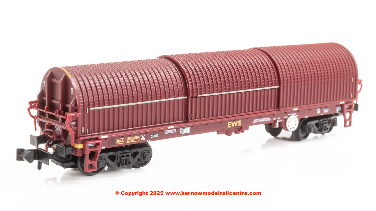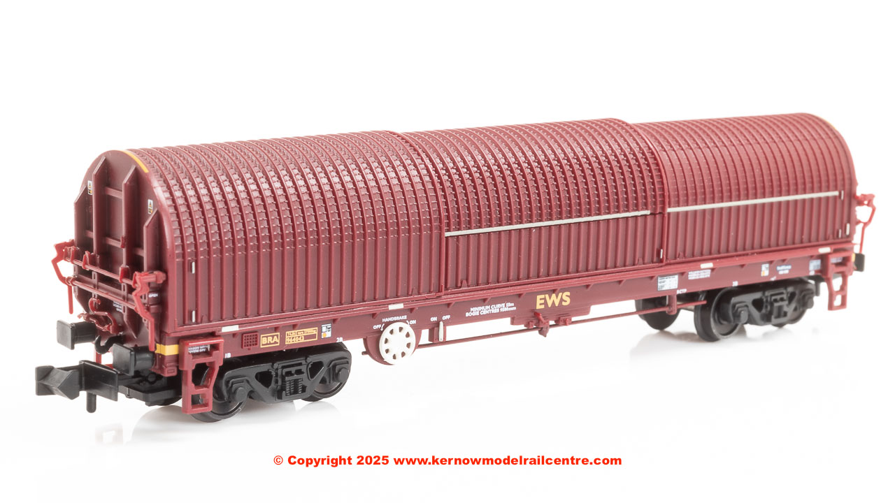 The Graham Farish model is a faithful replica of these distinctive wagons, accurately replicating the corrugated hooded body and heavy duty underframes using precision moulded components. Separate details are then added including the hood locking mechanisms at either end, the solebar steps and the handbrake wheels. Each bogie is fitted with metal wheels and axles whilst the integrated NEM coupling pockets allow alternative couplings to be fitted with ease. The characteristic maroon livery of EWS is replicated with a rich and authentic finish, topped with the various markings and operating instructions that are found on the real wagons.