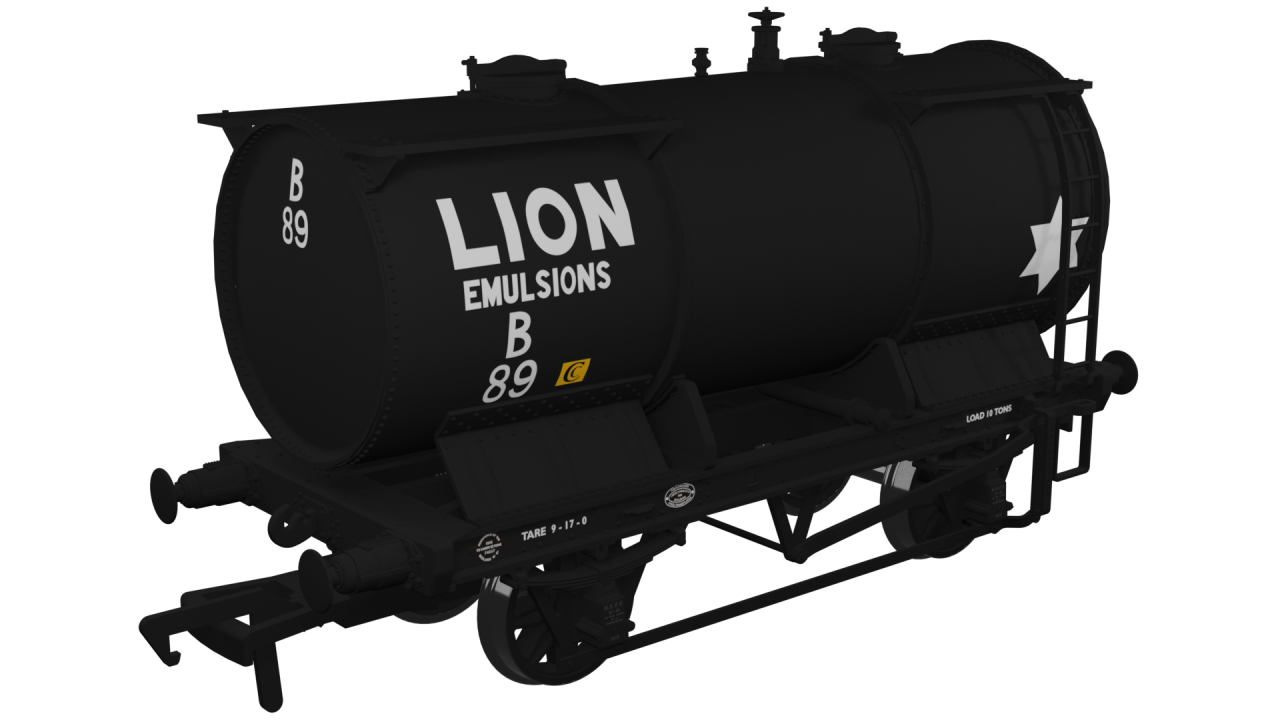 Rapido say "The Ministry of Munitions ordered a fleet of 100 10-ton tank wagons from The Leeds Forge Company in 1916. Ammonium nitrate is a tricky chemical to transport because it is a crystalline substance which absorbs water vapour and then sets hard like concrete, so there is potential for the load to set hard during transportation. To counter this problem, the wagon's design featured an airtight tank to prevent water ingress. This door resembled a conventional dished tank barrel end and was designed to open like a smokebox door; however, it was hinged at the top. The wagons were loaded through the two manholes on the top of the barrel and were emptied by releasing the end door and lifting them at the fixed end of the wagon to tip out the contents, this was further aided by the conical shape of the barrels. These were highly unusual wagons, as they appeared to be similar to their conventional liquid tank wagon counterparts but instead carried powder. They also featured underframes made from pressed steel components, which was a speciality of The Leeds Forge Company. At the end of WW1, these wagons immediately became War Surplus and were disposed of as there was no need for any wagons to transport ammonium nitrate; they were subsequently converted into liquid-carrying tank wagons. This was done by securing the end door and fitting discharge facilities. As almost brand-new wagons, they quickly found homes with several private companies. With these gradually changing hands over the years, they would appear across the country in an eclectic mix of guises."
