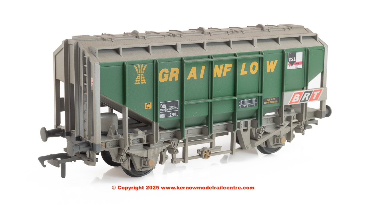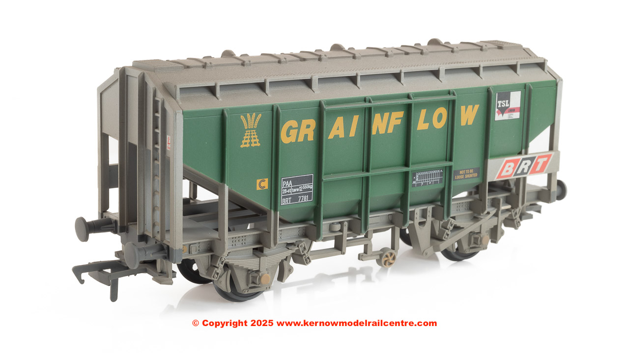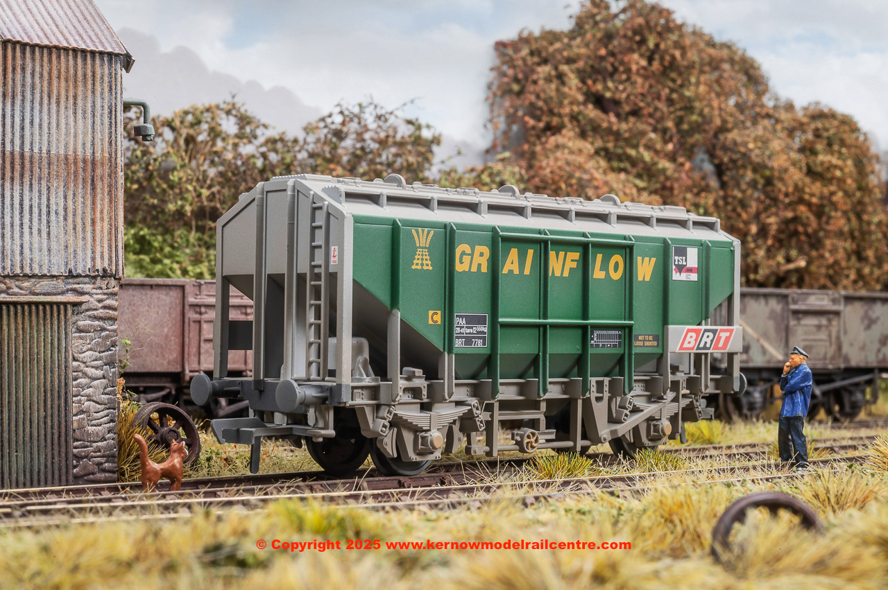The 35 Ton Grain Hopper Wagons, sometimes known as Whisky Covhops (COVered HOPpers), were built in the late-1960s for the transportation of grain from growing regions like East Anglia and South East England to the whisky distilleries of Scotland. The 4 wheel hopper wagons provided an increased payload over the types they replaced and were operated by Associated British Maltsters Ltd. And Scottish Malt Distillers. At first bold and colourful advertising boards were carried on the sides of wagons, but these were soon removed leaving just the brown livery, although some were later painted into the more eye catching ‘Grainflow’ scheme of green and grey. In later years some wagons were used on Alumina traffic in Scotland but all had been withdrawn before the end of the twentieth century.