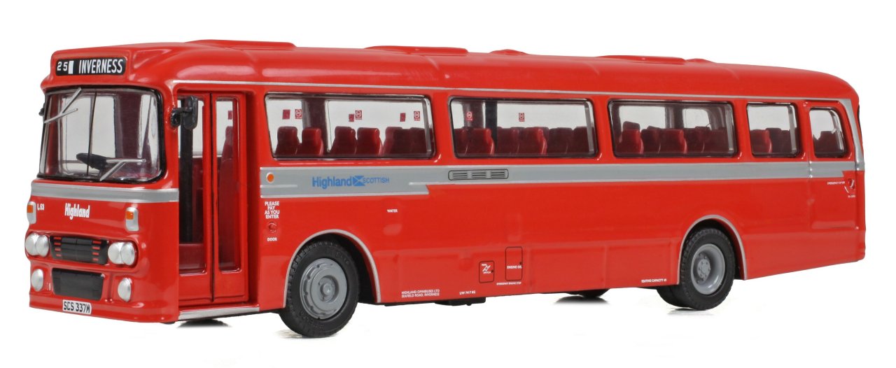 This model represents registration SCS337M, an AY-Type bodied Leyland Leopard built in 1974 as part of a batch of 43 dual purpose 49-seaters for Western SMT. This example later became part of the Highland Scottish fleet, operating as number L53. The model depicts it in its circa 1984 condition, again with 2-leaf doors, as working Service 25 to Inverness
