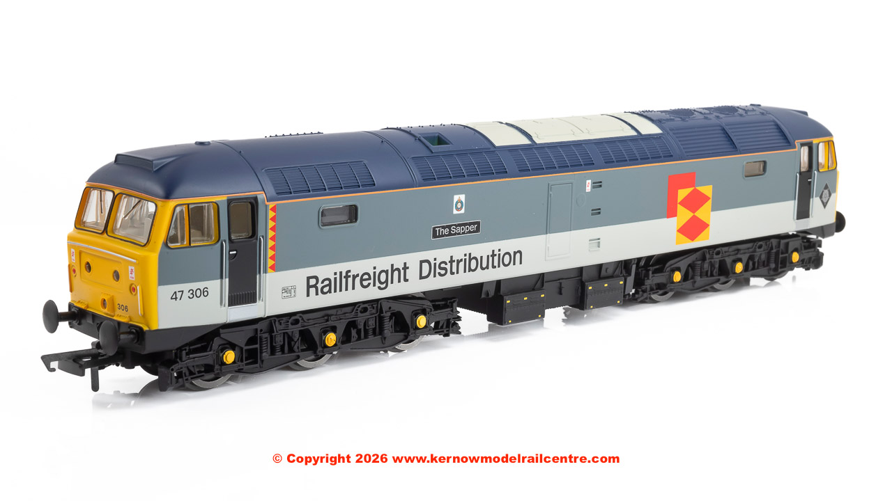 A striking and authentic addition to any diesel-era collection, the R30440 Railfreight Distribution Class 47 Co-Co 47306 ‘The Sapper’ is finished in the Railfreight Distribution livery.